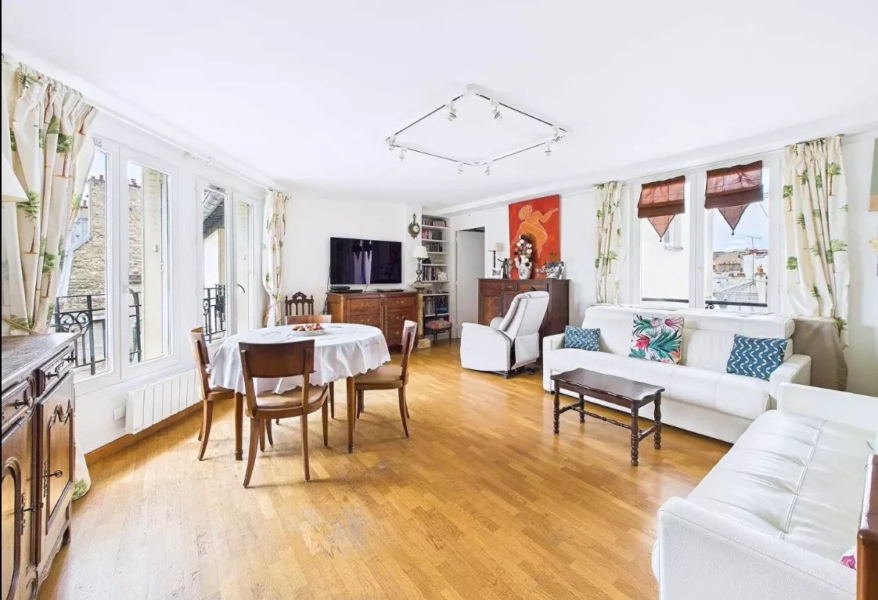 Appartement de 84 m² au 6 ème et dernier étage avec ascenseur jusqu’au 5 ème .Il se compose d’une entrée avec placard, séjour traversant,cuisine séparée (possible u.s.)