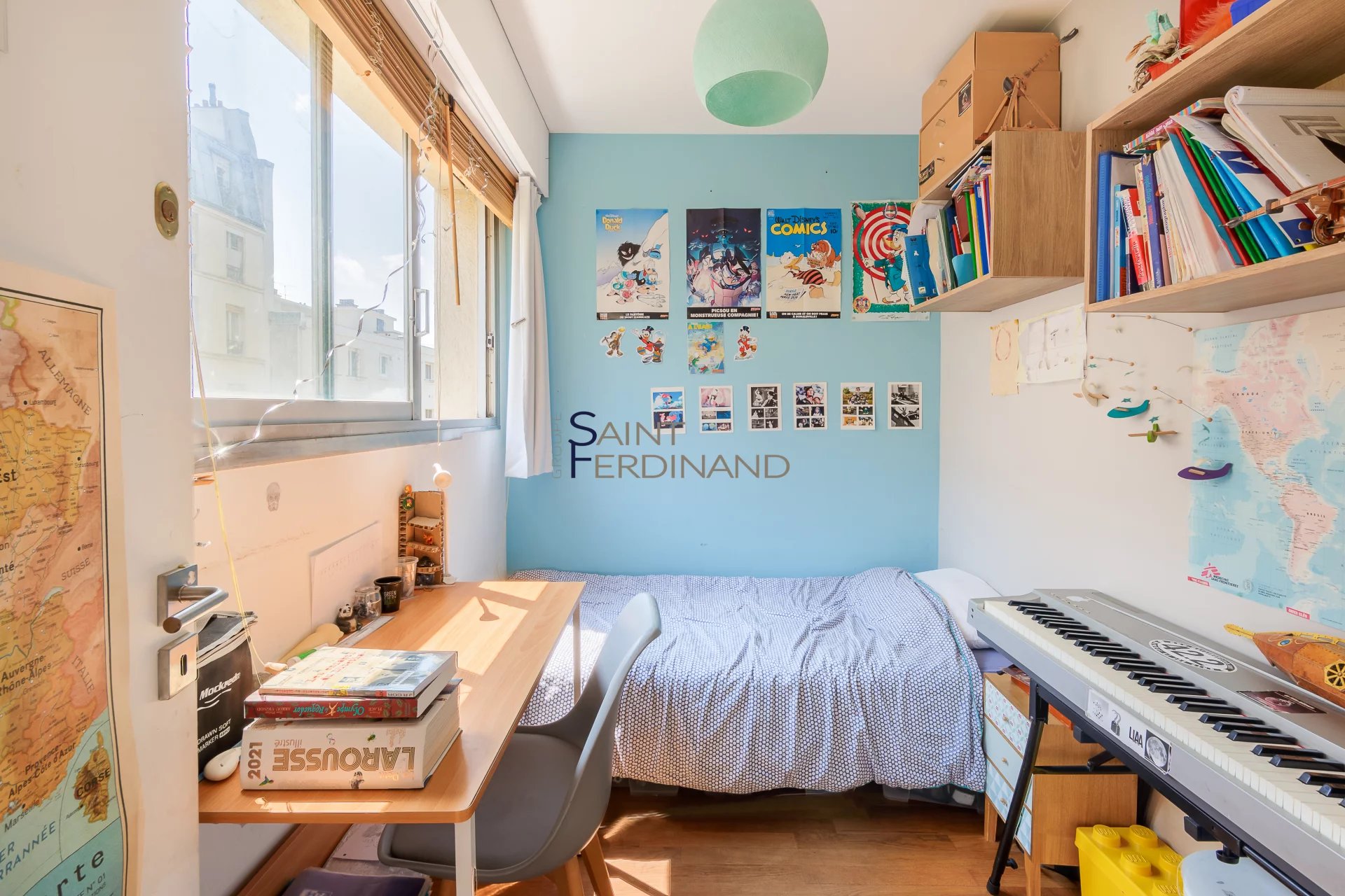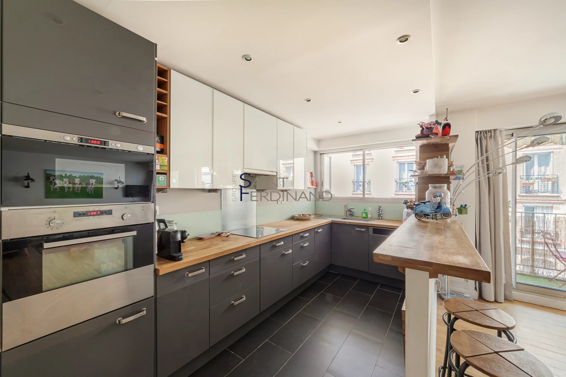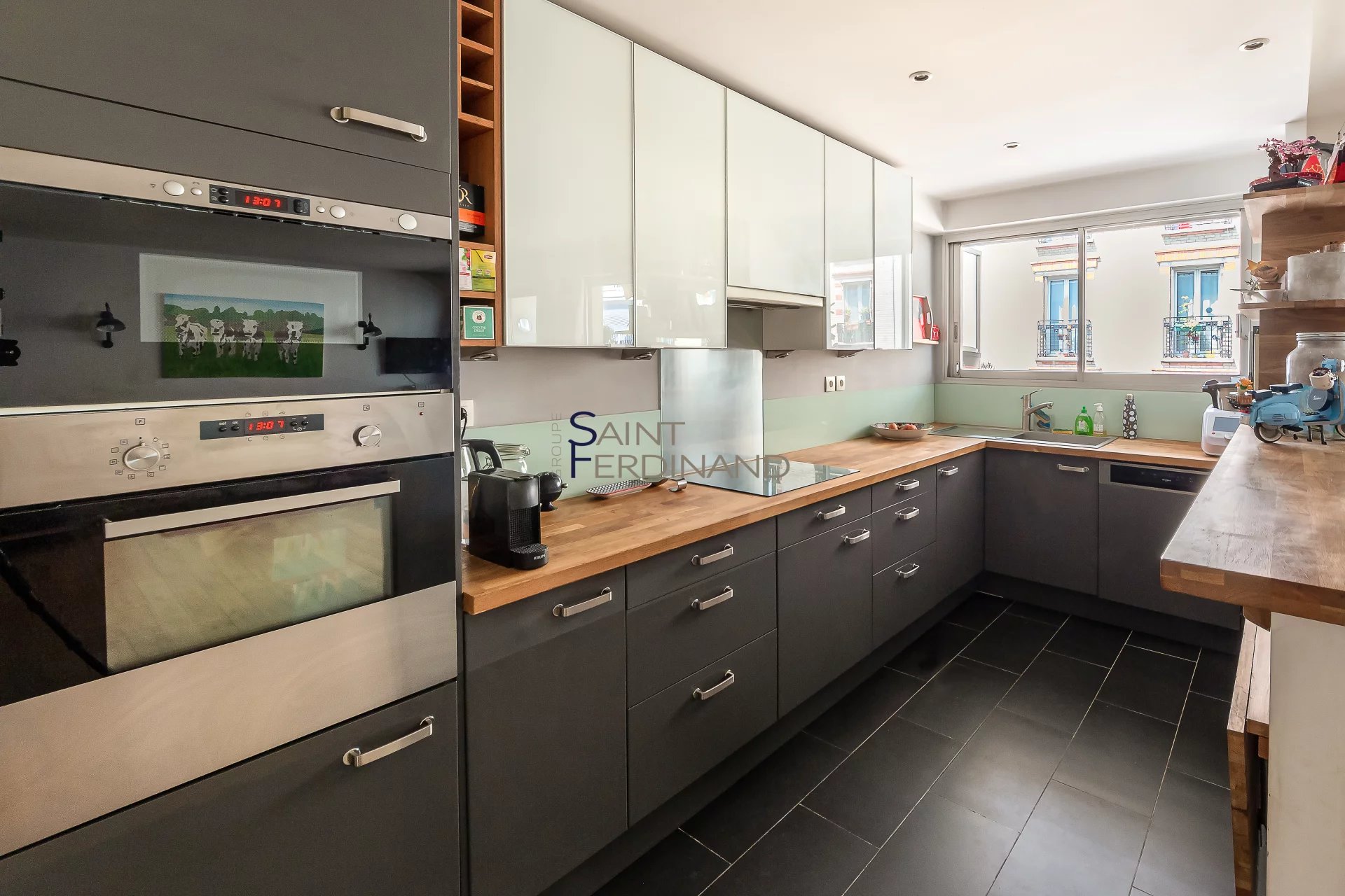 Paris 17 Rue Baron 4 chambres Exclusivité. Square Jean Leclerc/rue Baron. Au 3°étage d’un immeuble semi récent avec ascenseur, Saint Ferdinand Villiers vous présente un bel appartement, familial et traversant, composé de : entrée, grand séjour avec balcon attenant (10 m²), cuisine équipée semi ouverte, 3 chambres,bureau (ou chambre enfant), salle de bains, salle d’eau-Wc ,Wc dressing, 2 caves.Charges mensuelles collectives : 416 euros; Place de parking en sus. Très bon plan, calme et lumineux. Aucune procédure dans la copropriété. Honoraires d’agence (4%) inclus à charge acquéreur.