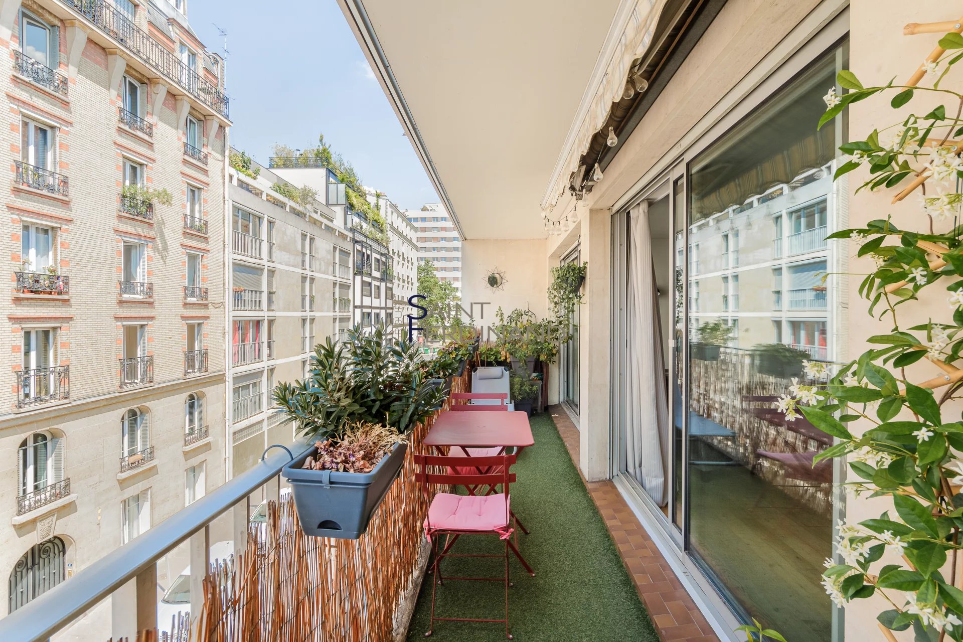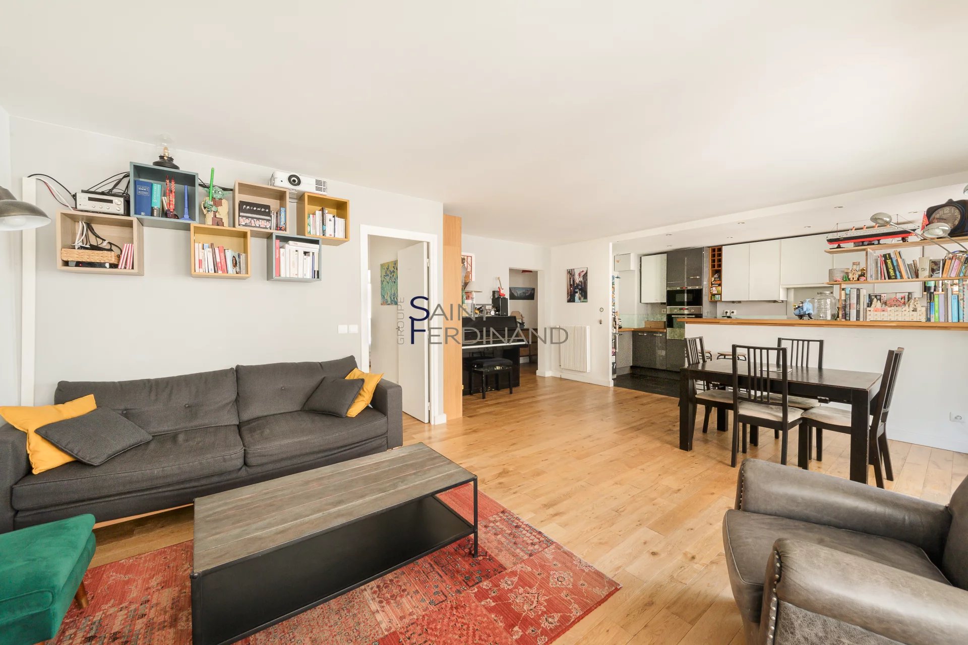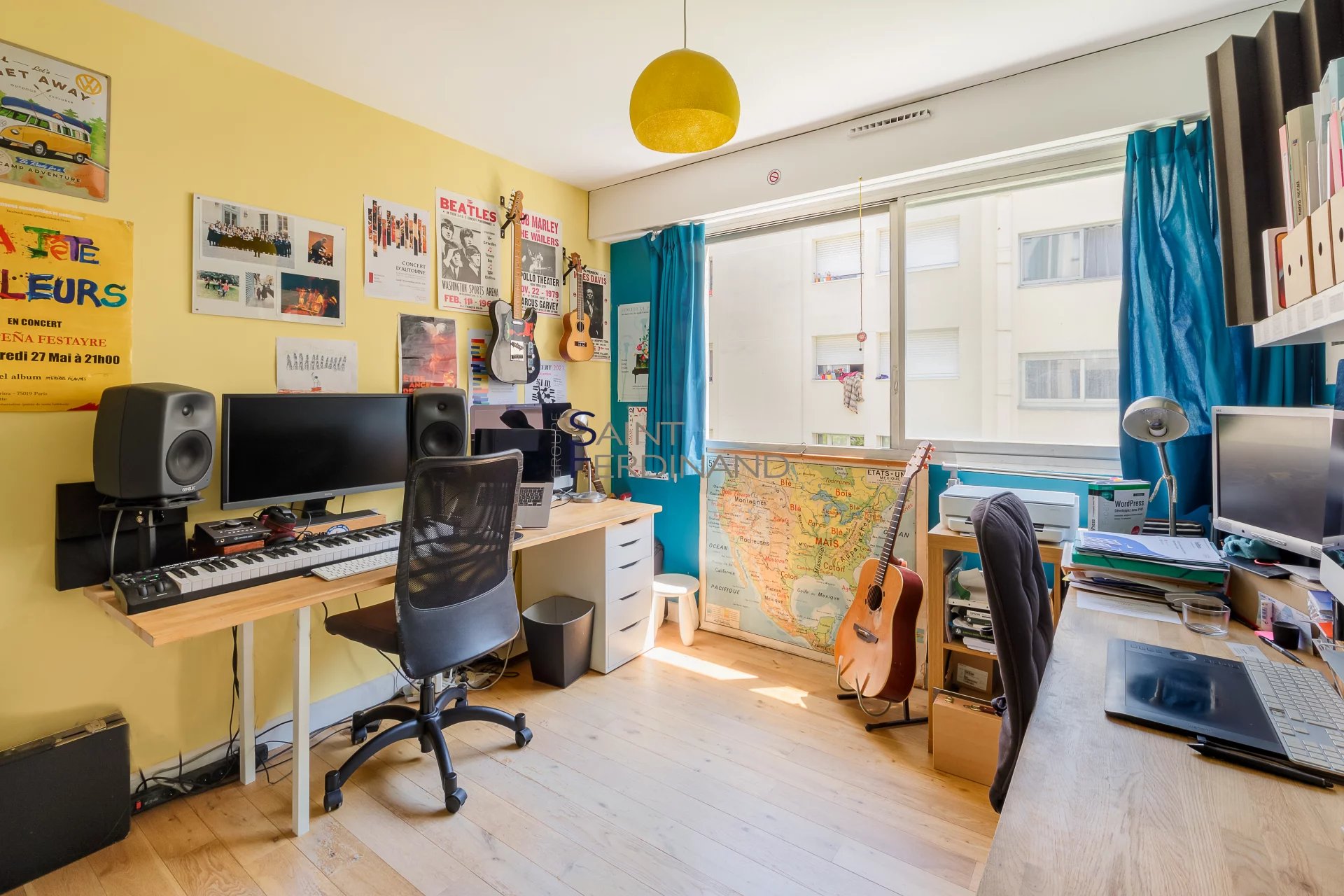 Paris 17 Rue Baron 4 chambres Exclusivité. Square Jean Leclerc/rue Baron. Au 3°étage d’un immeuble semi récent avec ascenseur, Saint Ferdinand Villiers vous présente un bel appartement, familial et traversant, composé de : entrée, grand séjour avec balcon attenant (10 m²), cuisine équipée semi ouverte, 3 chambres,bureau (ou chambre enfant), salle de bains, salle d’eau-Wc ,Wc dressing, 2 caves.Charges mensuelles collectives : 416 euros; Place de parking en sus. Très bon plan, calme et lumineux. Aucune procédure dans la copropriété. Honoraires d’agence (4%) inclus à charge acquéreur.