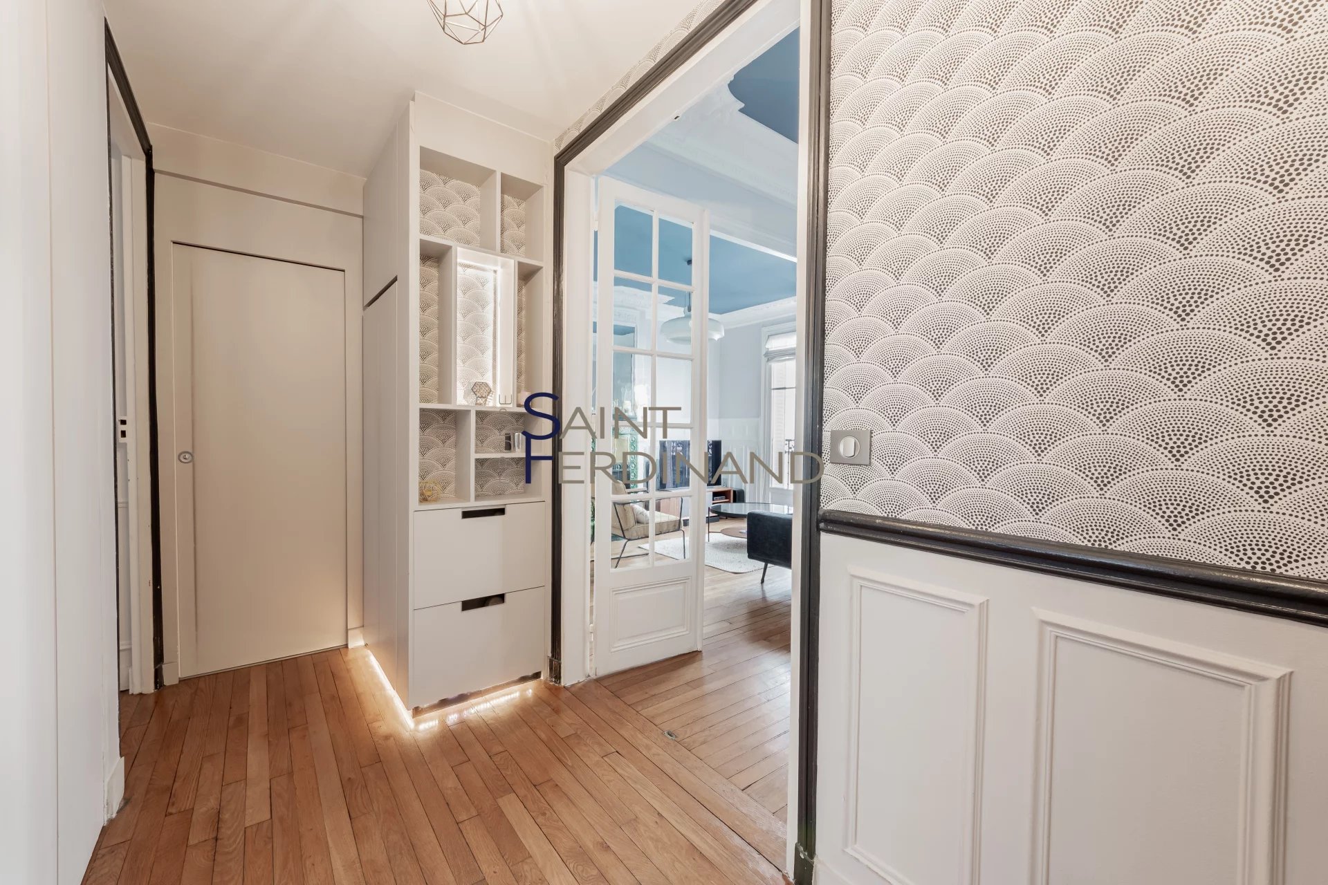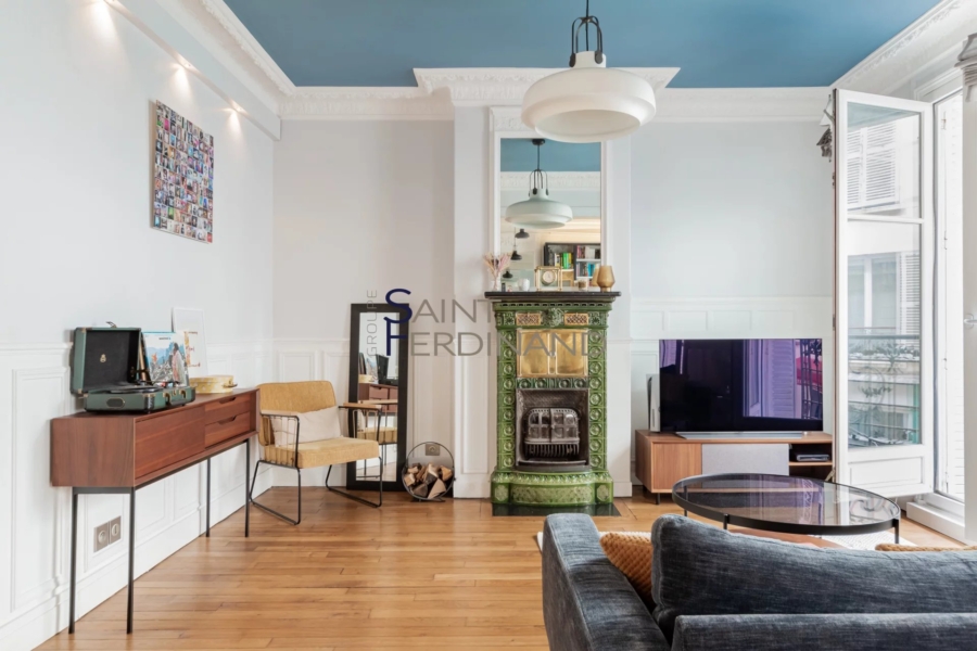 PARIS 17 – VILLIERS/MARCHE LEVIS – 3P – 690keuros Le groupe Saint Ferdinand vous propose en exclusivité, ce splendide 3 pièces de 55,20m² carrez situé dans un bel immeuble ancien au 1er étage avec ascenseur, dans une rue calme et prisée dans le micro quartier du Marché Levis. Cet appartement traversant est composé d’une entrée avec penderie, d’un double séjour avec poêle prussien et cheminée fonctionnels, une cuisine séparée équipée et aménagée, d’une chambre avec de nombreux rangements, une salle de bains et un WC séparé. Possibilité d’une 2ème chambre. Une cave complète le bien. Collège Chaptal. Coup de cœur assuré pour ce bien joliment décoré. Charme de l’Ancien : Parquet, magnifiques moulures, cheminées, trumeaux, belle HSP de 2,80m et en parfait état. Possibilité d’un box en sus à proximité.