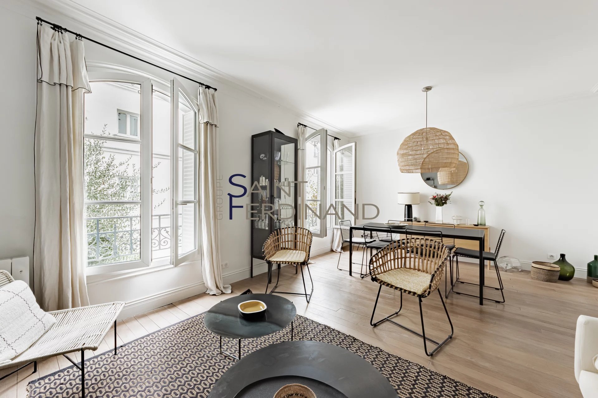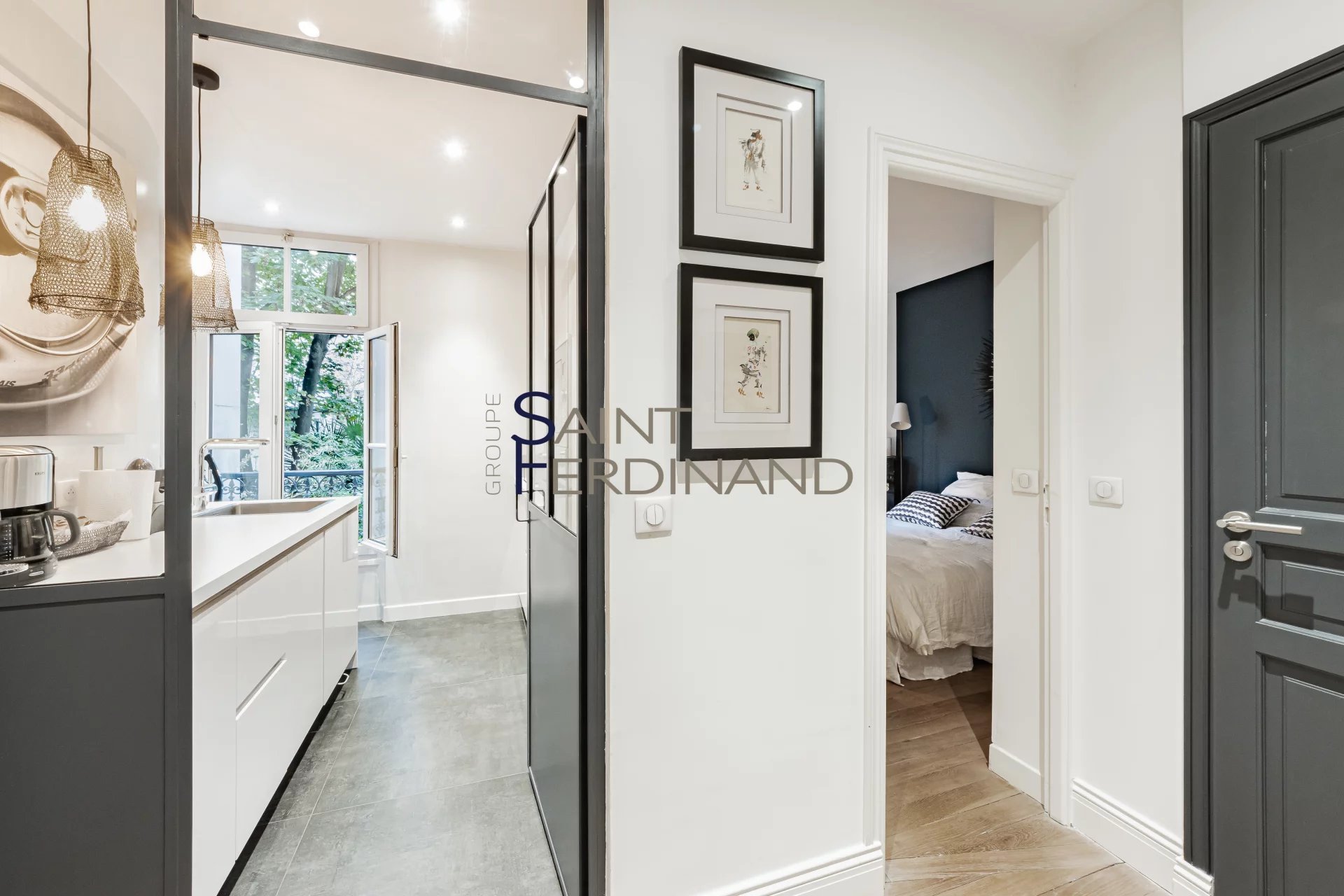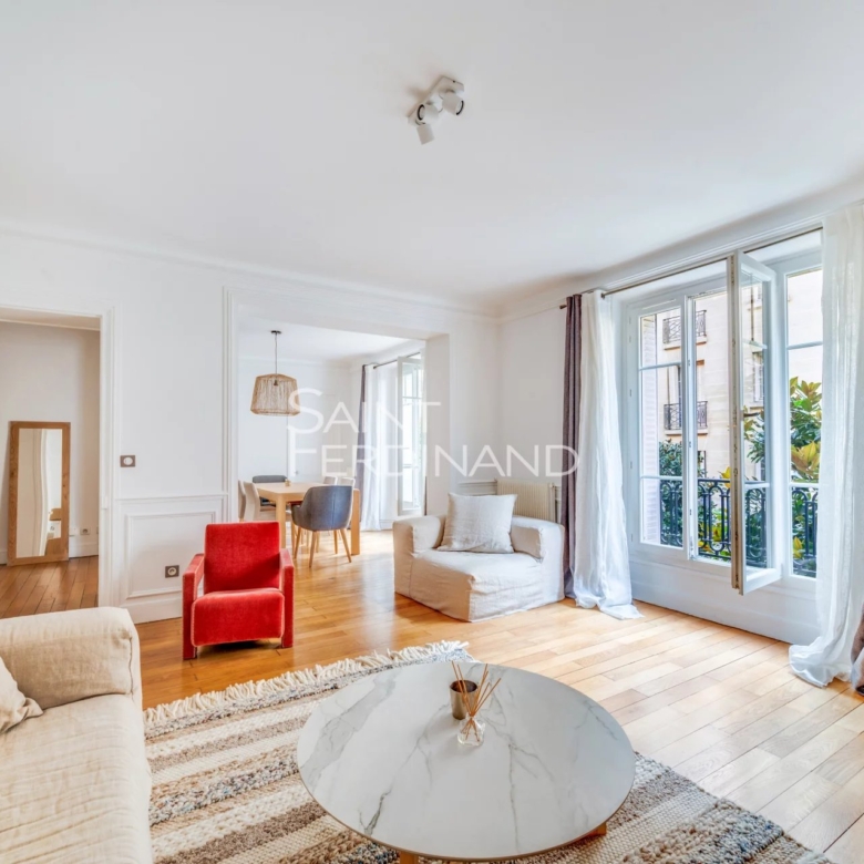 Paris 17ème Cœur des Batignolles. Le Groupe Saint Ferdinand Immobilier vous propose au 1er étage avec ascenseur d’un immeuble en pierre de taille, un appartement traversant sur jardin en excellent état de 3 pièces composé de : entrée, double séjour, cuisine entièrement équipée, chambre avec rangements, salle d’eau, wc indépendant et cave. Plan optimisé, sans perte d’espace. Calme et lumineux (exposition : Sud-Est). Charme de l’ancien. Idéalement situé, proche des transports et des commerces. Charges annuelles : 2.196 euros. Estimation des couts annuels d’énergie entre : 1.680 euros et 2.320 euros. Commission incluse de 4.62% à la charge de l’acquéreur. Aucune procédure dans la copropriété. Nombre de lots : N.C Les informations sur les risques auxquels ce bien est exposé sont disponibles sur le site Géorisques https://www.georisques.gouv.fr