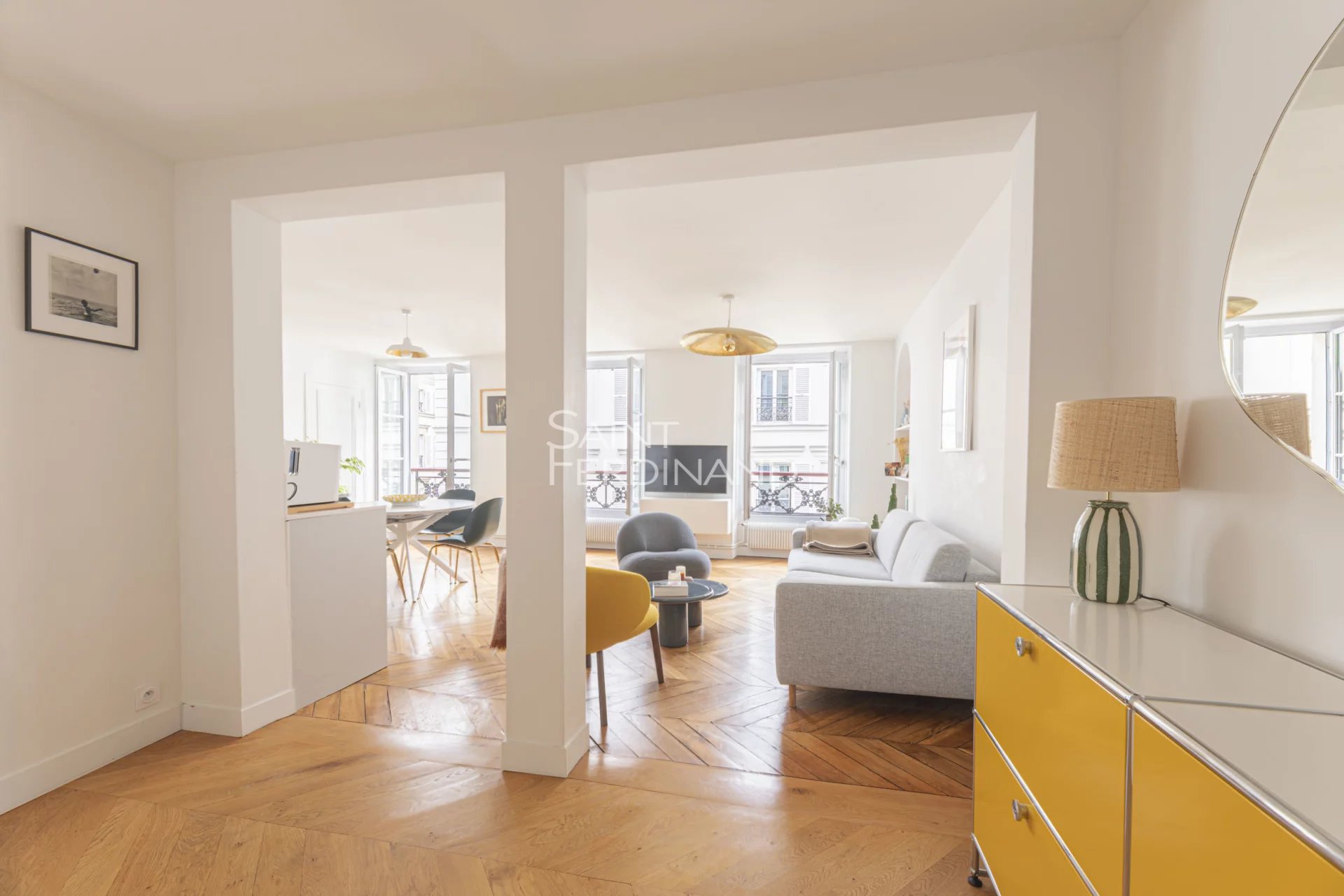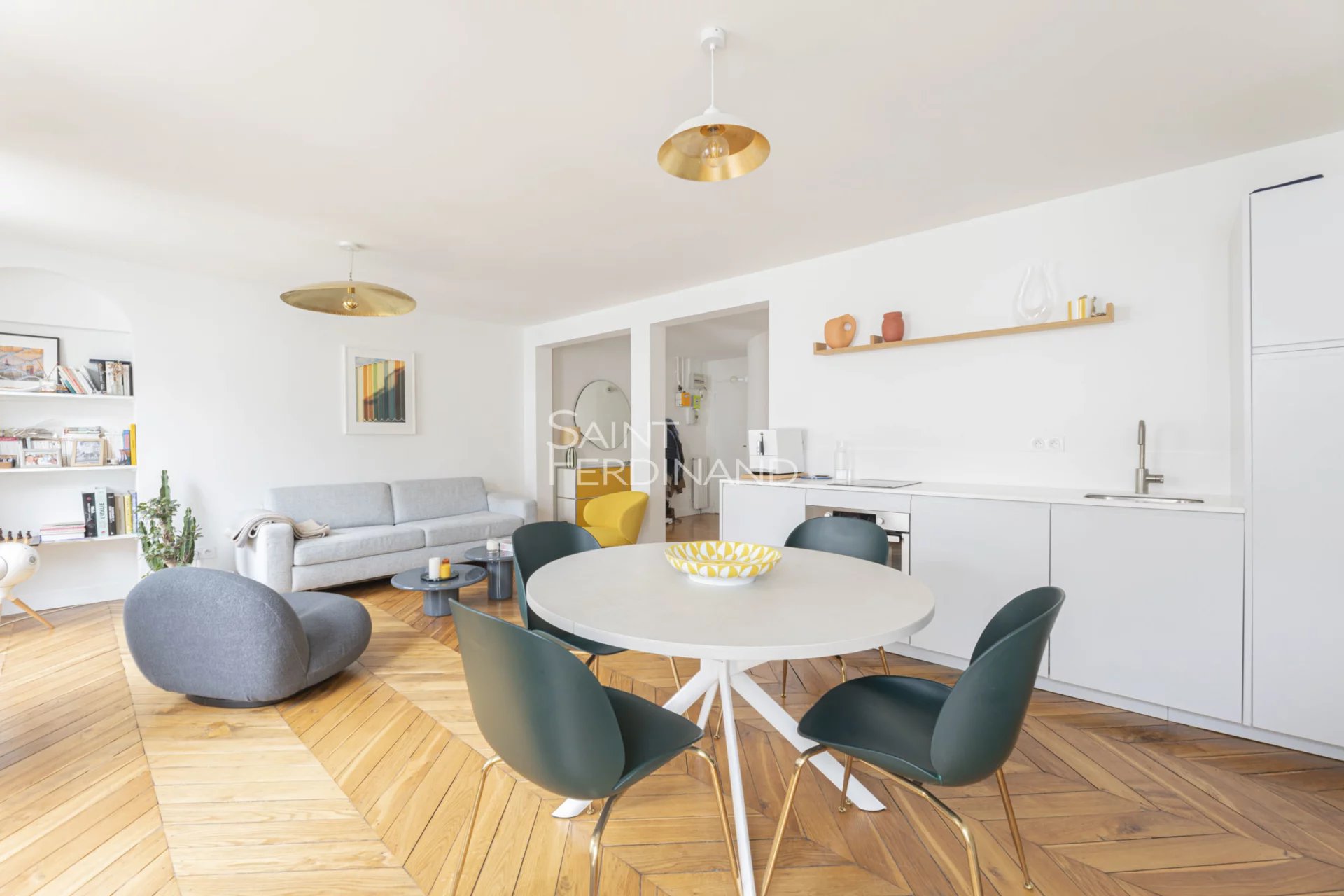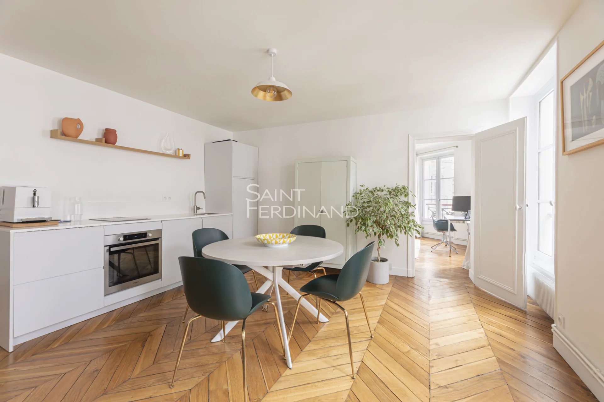 Paris 17ème – Cœur des Batignolles. Le Groupe Saint Ferdinand Immobilier vous propose au 3ème étage d’un immeuble bien entretenu, un magnifique appartement lumineux de 3 pièces en parfait état composé de : une entrée, un double séjour avec cuisine ouverte équipée, une chambre avec dressing, (2° chambre possible), une salle de douche avec WC et une cave. Plan optimisé sans perte d’espace. Proche des commerces et des transports: Métros: Rome et Pont Cardinet. Charges annuelles : 1 760 euros. Estimation des couts annuels d’énergie : entre 610 euros et 950 euros. Commission incluse de 5 % à la charge de l’acquéreur. Aucune procédure dans la copropriété. Nombre de lots : 22. Les informations sur les risques auxquels ce bien est exposé sont disponibles sur le site Géorisques https://www.georisques.gouv.fr