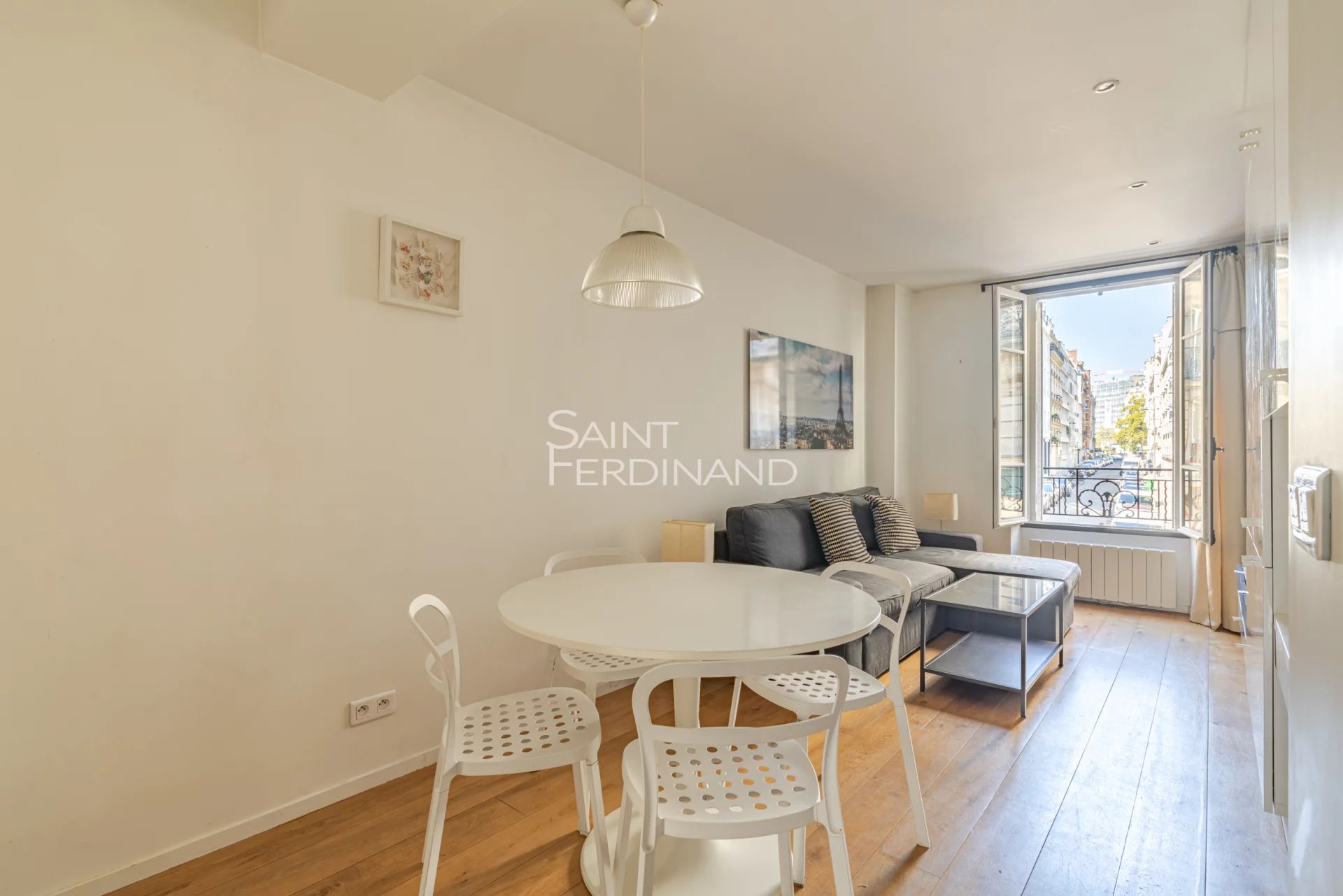 Paris 17ème Guillaume Tell / Rennequin. Le Groupe Saint Ferdinand Immobilier vous propose au 1er étage d’un immeuble pierre de taille, un magnifique appartement en parfait état de 2 pièces composé de : entrée, séjour avec cuisine ouverte équipée, chambre avec rangements, salle de d’eau-wc et cave. Calme et lumineux (exposition : ouest). Plan optimisé, sans perte d’espace. Idéalement situé, proche des transports et des commerces. Charges annuelles : 1.776 euros. Estimation des couts annuels d’énergie : 1.170euros et 1.610euros. Commission incluse de 5.06 % à la charge de l’acquéreur. Aucune procédure dans la copropriété. Nombre de lots : N.C Les informations sur les risques auxquels ce bien est exposé sont disponibles sur le site Géorisques https://www.georisques.gouv.fr