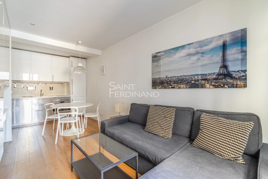 Paris 17ème Place Pereire / Guillaume Tell. Le Groupe Saint Ferdinand Immobilier vous propose au 1er étage d’un immeuble pierre de taille, un magnifique appartement en parfait état de 2 pièces composé de : entrée, séjour avec cuisine ouverte équipée, chambre avec rangements, salle de d’eau-wc et cave. Calme et lumineux (exposition : ouest). Plan optimisé, sans perte d’espace. Idéalement situé, proche des transports et des commerces. Charges annuelles : 1.776 euros. Estimation des couts annuels d’énergie : 1.170euros et 1.610euros. Commission incluse de 4.71 % à la charge de l’acquéreur. Aucune procédure dans la copropriété. Nombre de lots : N.C Les informations sur les risques auxquels ce bien est exposé sont disponibles sur le site Géorisques https://www.georisques.gouv.fr