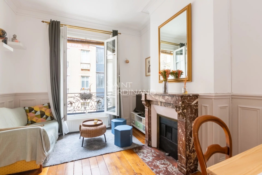 Paris 17ème Square des Batignolles. 2 pièces Calme et très lumineux. Le Groupe Saint Ferdinand Immobilier vous propose au 4ème étage d’un immeuble Pierre de Taille, un magnifique appartement traversant en parfait état de 2 pièces composé de : entrée, séjour, cuisine équipée, chambre avec rangements, salle de d’eau, wc indépendant et cave. Calme et très lumineux. Vue dégagée. Charme de l’ancien. Belle hauteur sous plafond. Plan optimisé, sans perte d’espace. Idéalement situé, proche des transports et des commerces. Charges annuelles : 1.200 euros. Estimation des couts annuels d’énergie : N.C. Commission incluse de 5 % à la charge de l’acquéreur. Aucune procédure dans la copropriété. Nombre de lots : N.C Les informations sur les risques auxquels ce bien est exposé sont disponibles sur le site Géorisques https://www.georisques.gouv.fr
