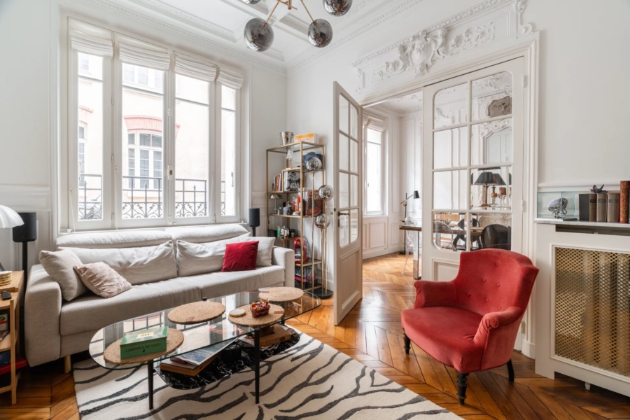 Il se compose: d’une entrée, d’un grand double séjour (28m2), d’un dressing/buanderie, d’une cuisine séparée avec accès sur cour, d’une salle d’eau, d’un WC séparé et d’une belle chambre sur cour (17m2).