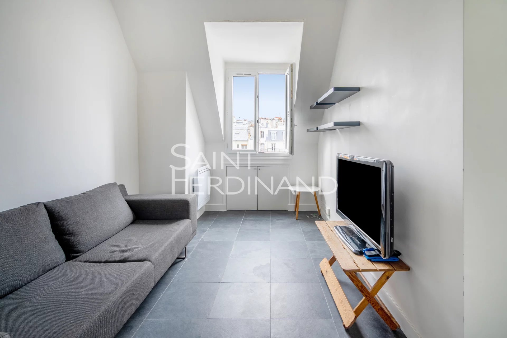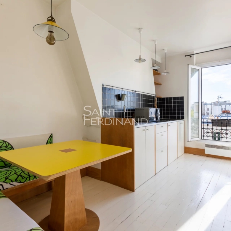 PARIS 17ème – TERNES-ÉTOILE Coup de cœur pour ce magnifique 2 pièces au 6e et dernier étage avec ascenseur d’un bel immeuble Haussmannien, cet appartement traversant baigné de lumière, bénéficie d’une belle vue dégagée sur les toits de Paris. Il se compose d’une entrée, d’un séjour avec une cuisine ouverte et équipée, d’une chambre avec une salle d’eau et WC séparé.