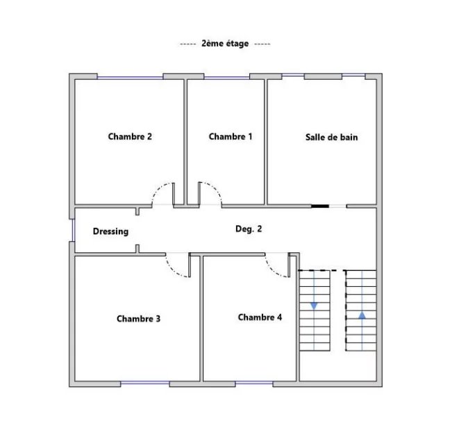 Au 2ème étage se trouvent quatre belles chambres, un dressing, une salle de bains/salle d’eau avec toilettes,