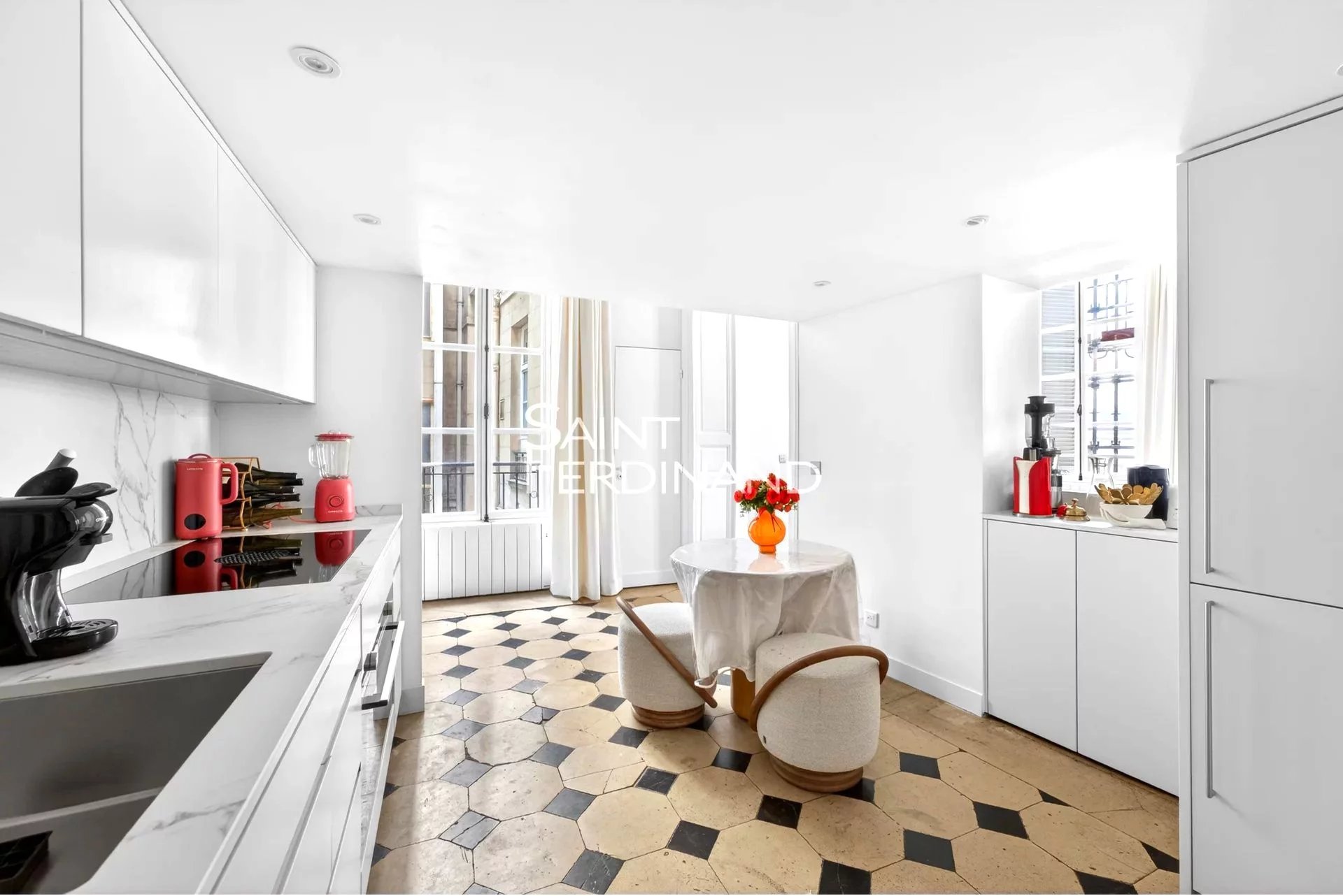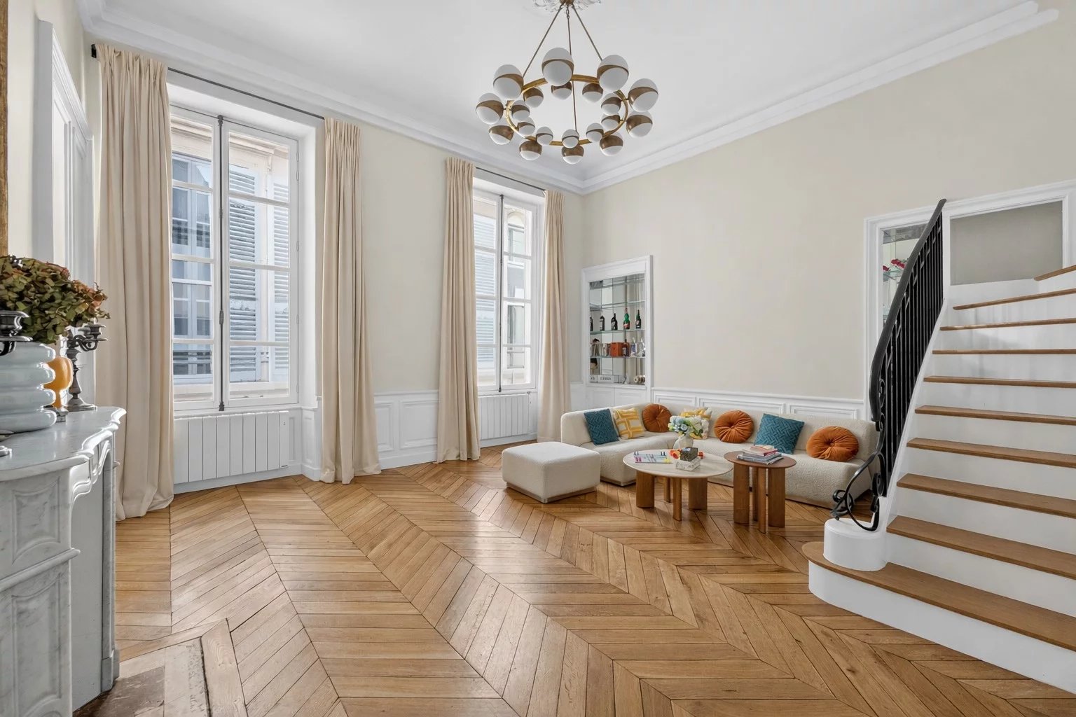 Paris 6e Jardin du Luxembourg 3 Chambres A deux pas du jardin du Luxembourg, Le groupe Saint Ferdinand Immobilier vous propose ce bien d’exception à l’esprit ‘maison’ sur 2 niveaux. Il se compose d’une entrée desservant un vaste séjour avec 4,10m de hauteur sous plafond et fenêtres toute hauteur, une grande et belle cuisine dinatoire entièrement équipée, une chambre pensée comme une suite avec dressing, bureau en mezzanine et salle de bains, une 2e chambre avec salle de douche et WC, une 3e chambre avec salle de douche et WC, une cave saine. Ce bien bénéficie de somptueux volumes, un parquet en point de Hongrie ainsi que de belles cheminées. Une rénovation de grande qualité a été effectuée. Le plan est optimisé avec de nombreux rangements. Volumes généreux, bel immeuble en pierre de taille daté de 1780 et quartier idéal entre la Place de l’Odéon et le jardin du Luxembourg. Ravalement de la façade extérieure en cours. Une visite s’impose pour ce bien très atypique possédant une adresse intemporelle. NB lot: NC. Les informations sur les risques auxquels ce bien est exposé sont disponibles sur le site Géorisques https://www.georisques.gouv.fr