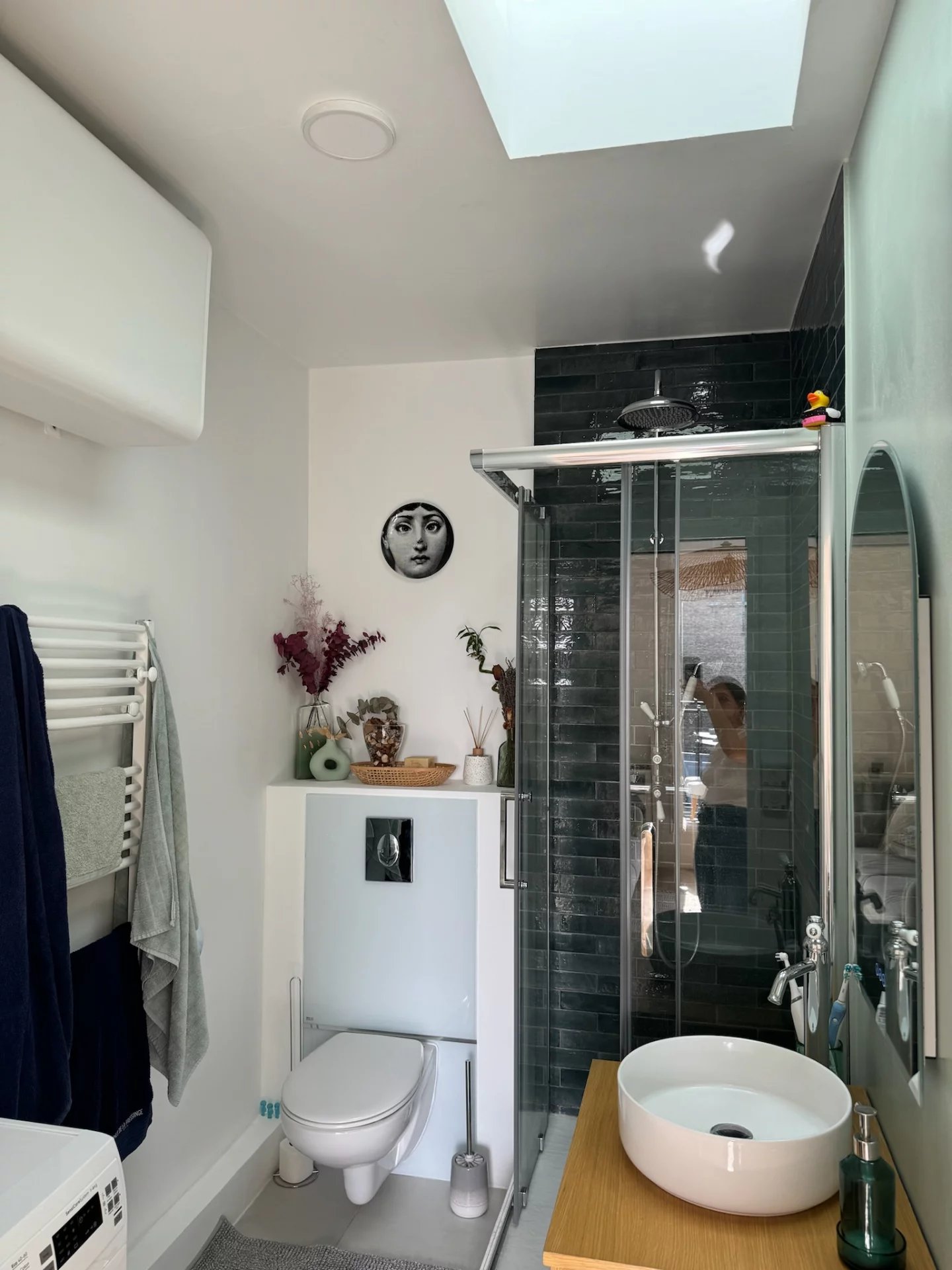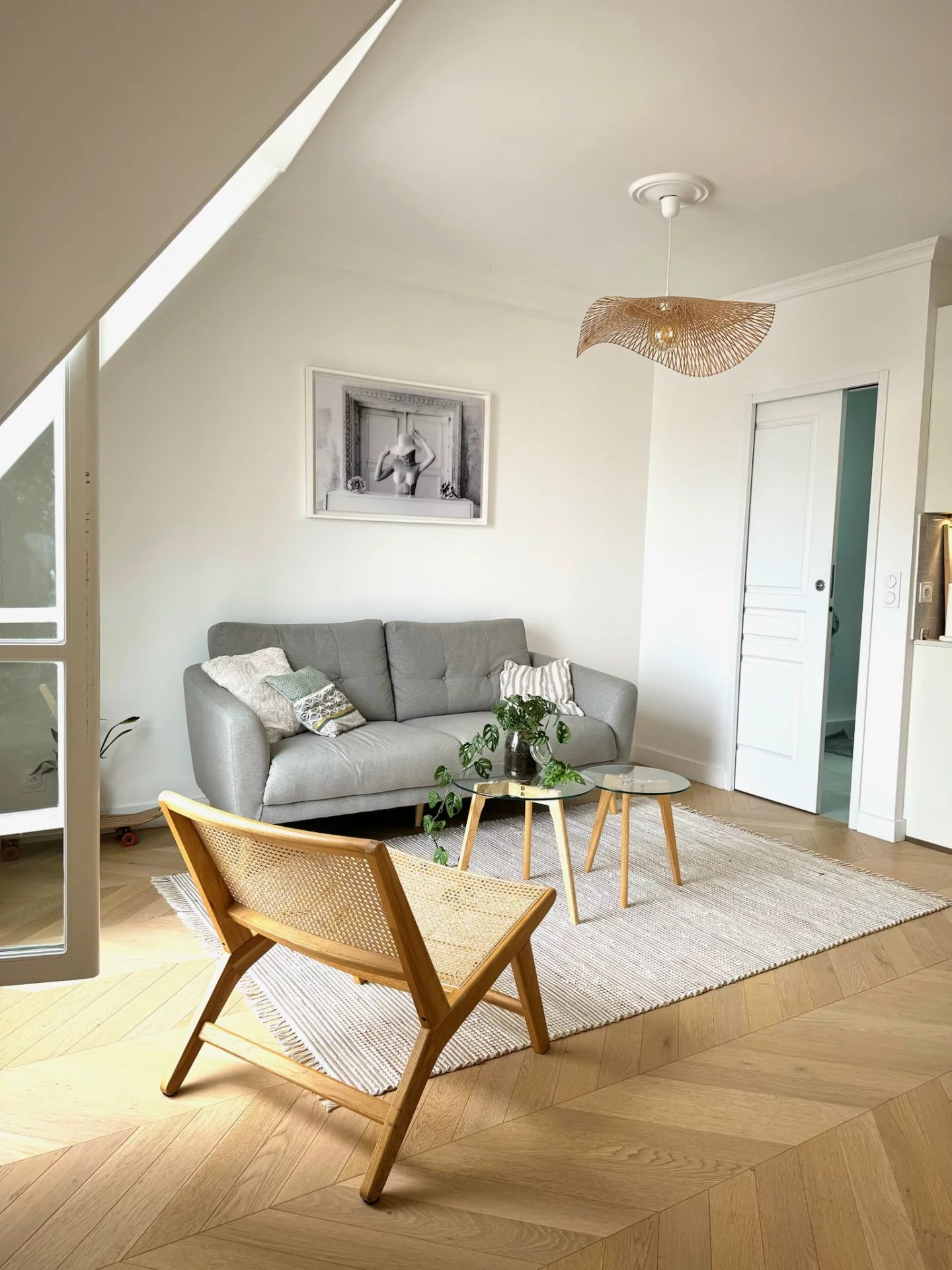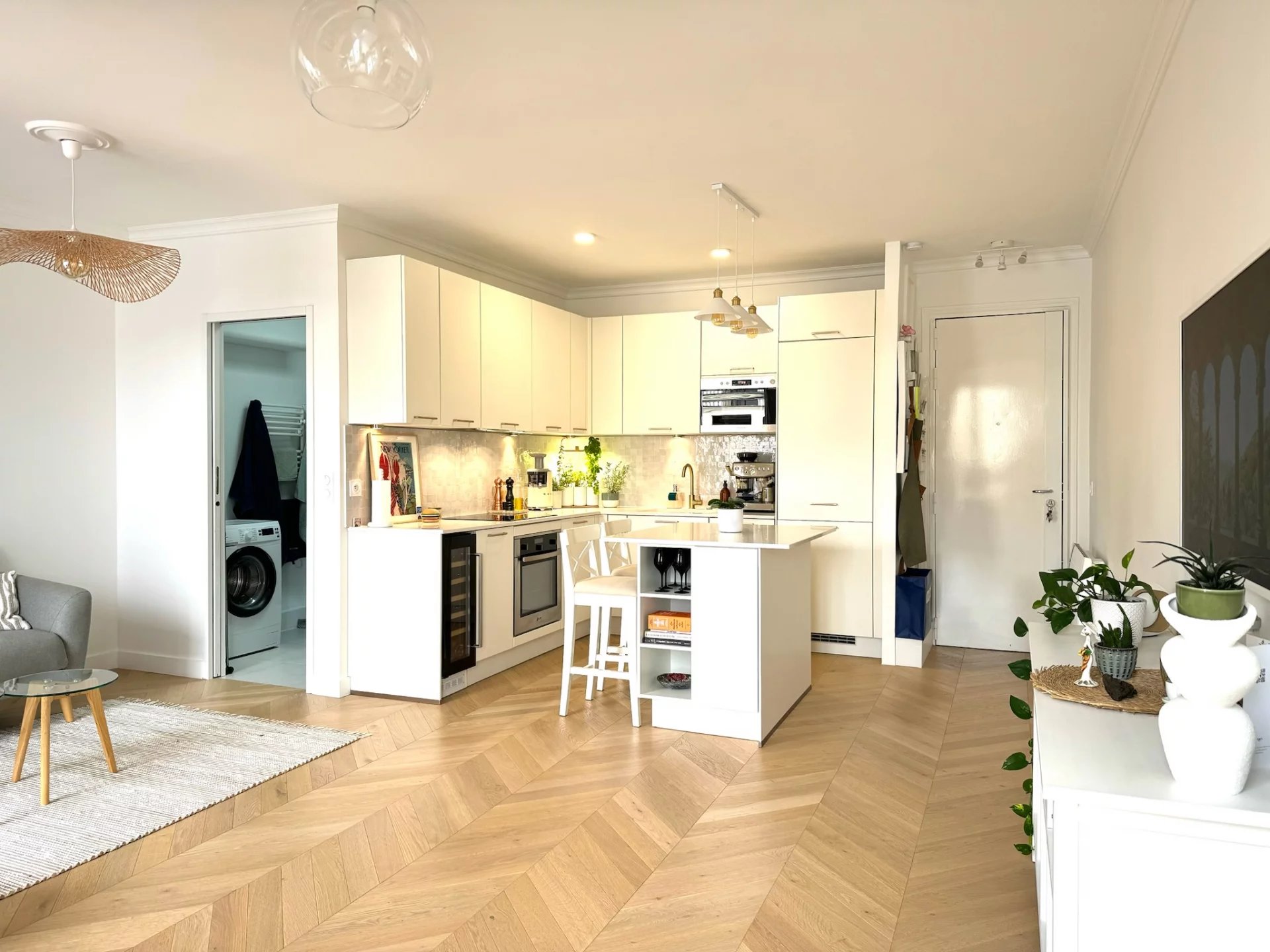 Rénovation haut de gamme et de qualité : parquet en point de Hongrie, cuisine en quartz, dressing sur mesure, combles optimisés, salle de bain avec fenêtre zénithale,