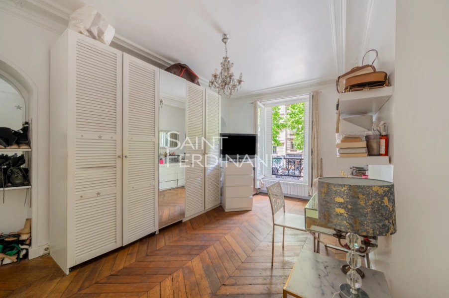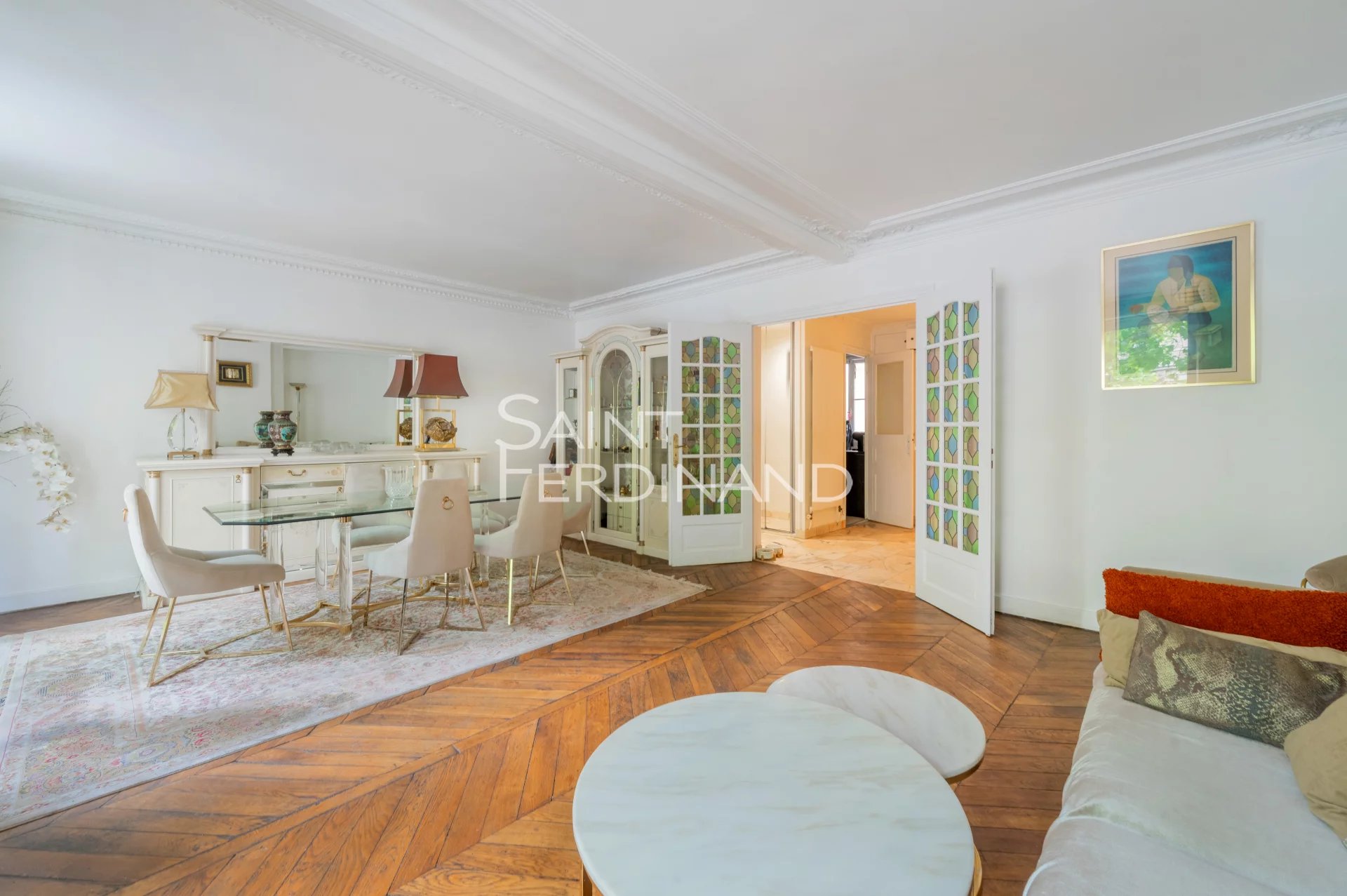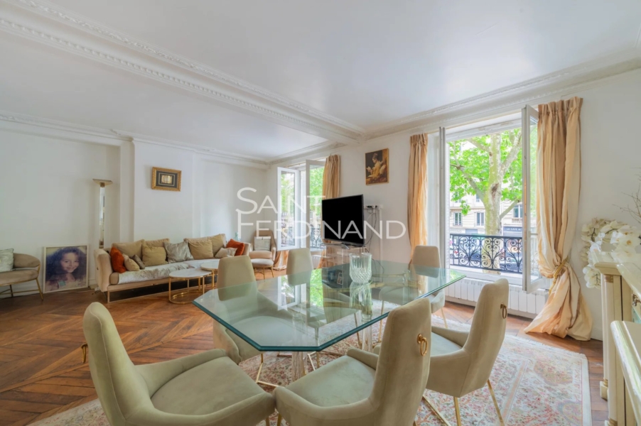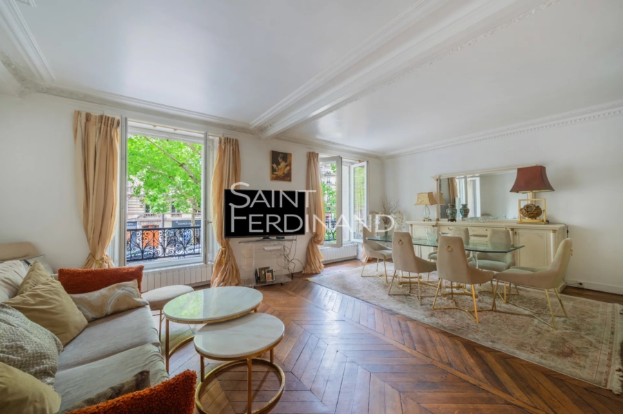 PARIS 8eme VILLIERS / BD DE COURCELLES Saint Ferdinand immobilier vous propose dans un bel immeuble Haussmannien, un appartement familial traversant qui se compose d’une galerie d’entrée, d’une double réception, d’une cuisine équipée, deux grandes chambres, d’une salle d’eau et toilette séparé.