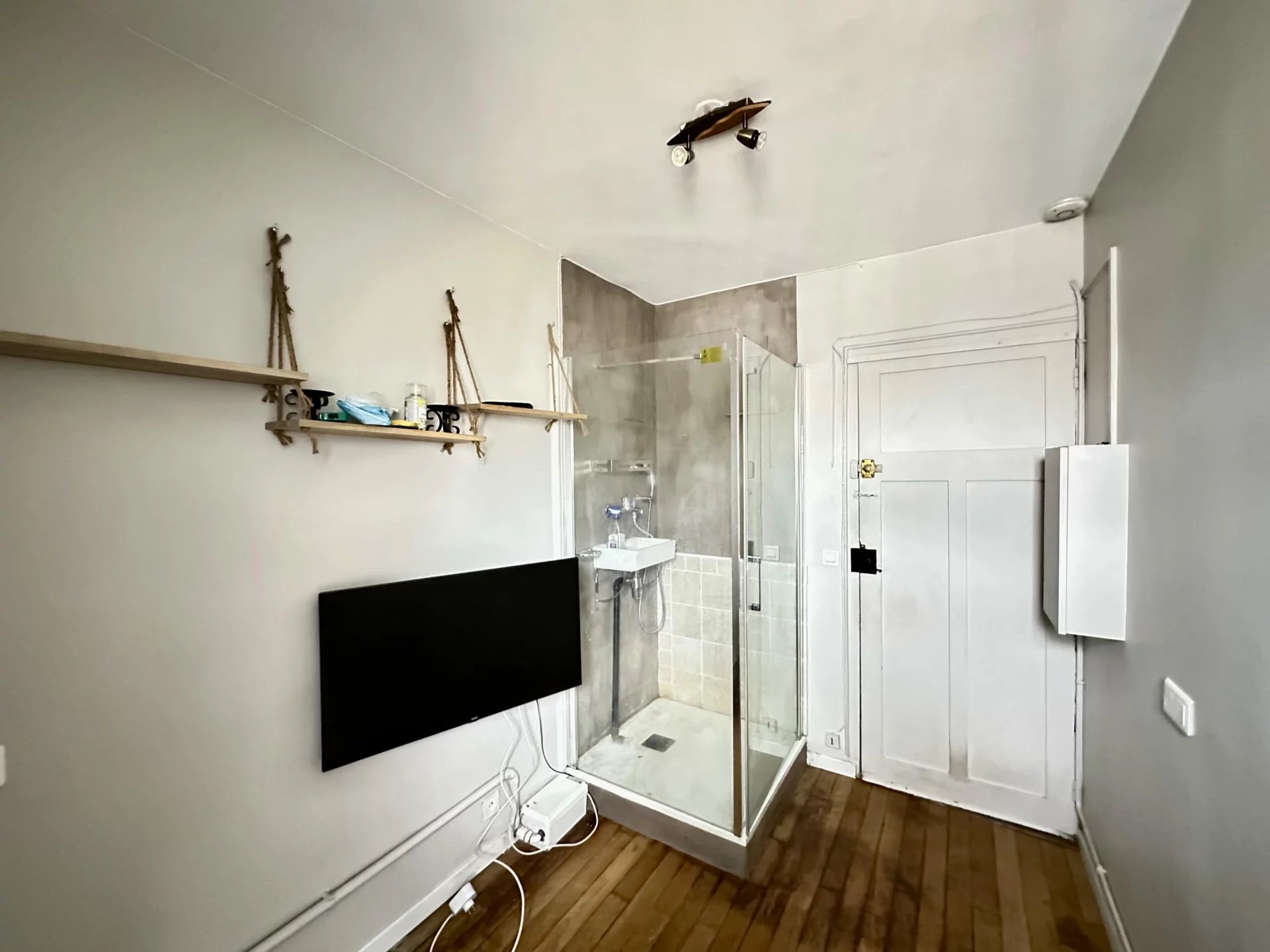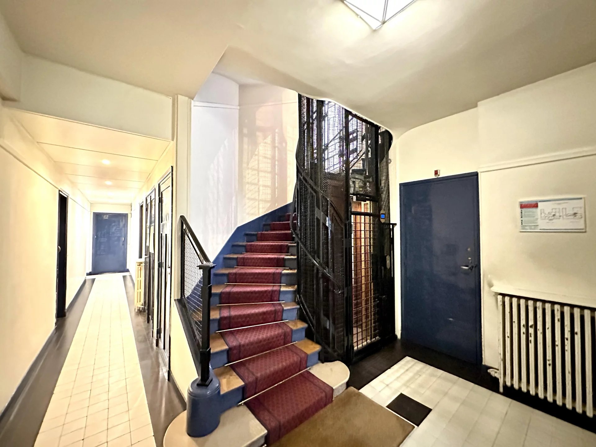 Paris VII. Chambre Dernier Etage Asc. Invalides. Dans un très bel immeuble Art Déco bien entretenu, nous vous proposons au 7ème étage avec ascenseur (jusqu’au 6 + 1 étage par escalier) une chambre de 6,63m² en bon état avec coin douche. Toilette sur le palier. Proche commerces et métro. Calme. Belles parties communes. Vue Toits de Paris et monuments.