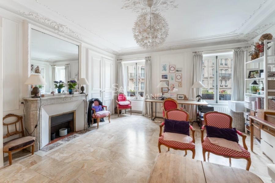 Paris Villiers Europe 4 chambres vue dégagée Rue de Constantinople. Dans un immeuble Pierre de taille de standing avec ascenseur et gardien, appartement familial traversant de 6 PIECES composé de : entrée, double séjour, 4 chambres, grand dressing, salle de bains, Wc, cuisine aménagée et cave. Clair (exposition sud ouest ) avec vue dégagée, ce bien bénéficie d’un très bon plan. Charme de l’ancien : parquet, moulures, cheminées et belle hauteur sous plafond (2.86m) Sectorisation collège CHAPTAL Charges mensuelles :266 euros. Honoraires d’agence (5%) inclus à charge acquéreur. Chambre de service (9m² carrez) en sus