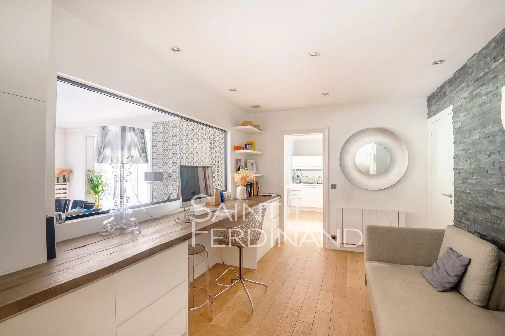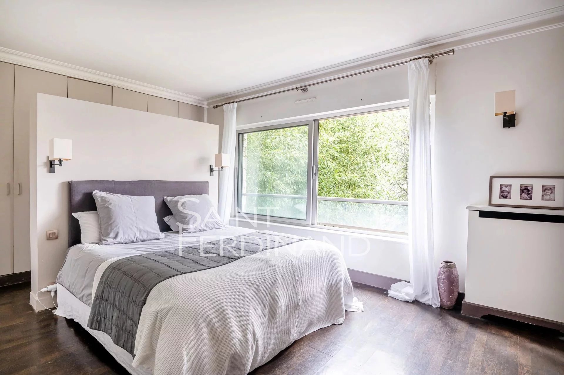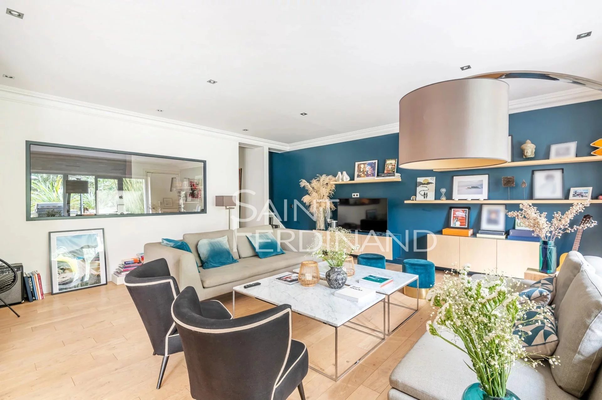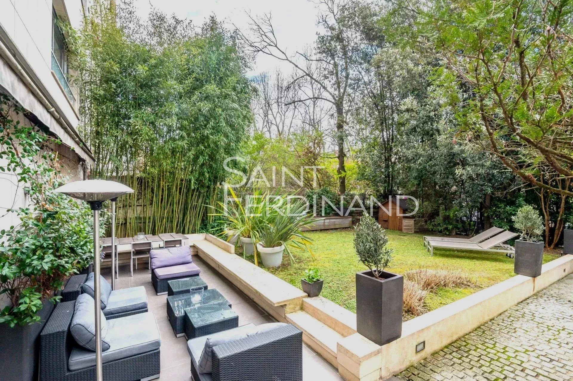 Rez de Jardin 3 chambres Duplex Saint Ferdinand Immobilier vous propose ce superbe duplex traversant de 174m² avec terrasse et jardin de 200m² exposés sud-ouest. Il se compose au rez de chaussée d’un large et très beau double séjour tout en baies vitrées donnant sur le jardin, une cuisine ouverte sur le séjour entièrement équipée avec espace dinatoire, un bureau, une buanderie, un dressing ainsi qu’un WC d’invité.