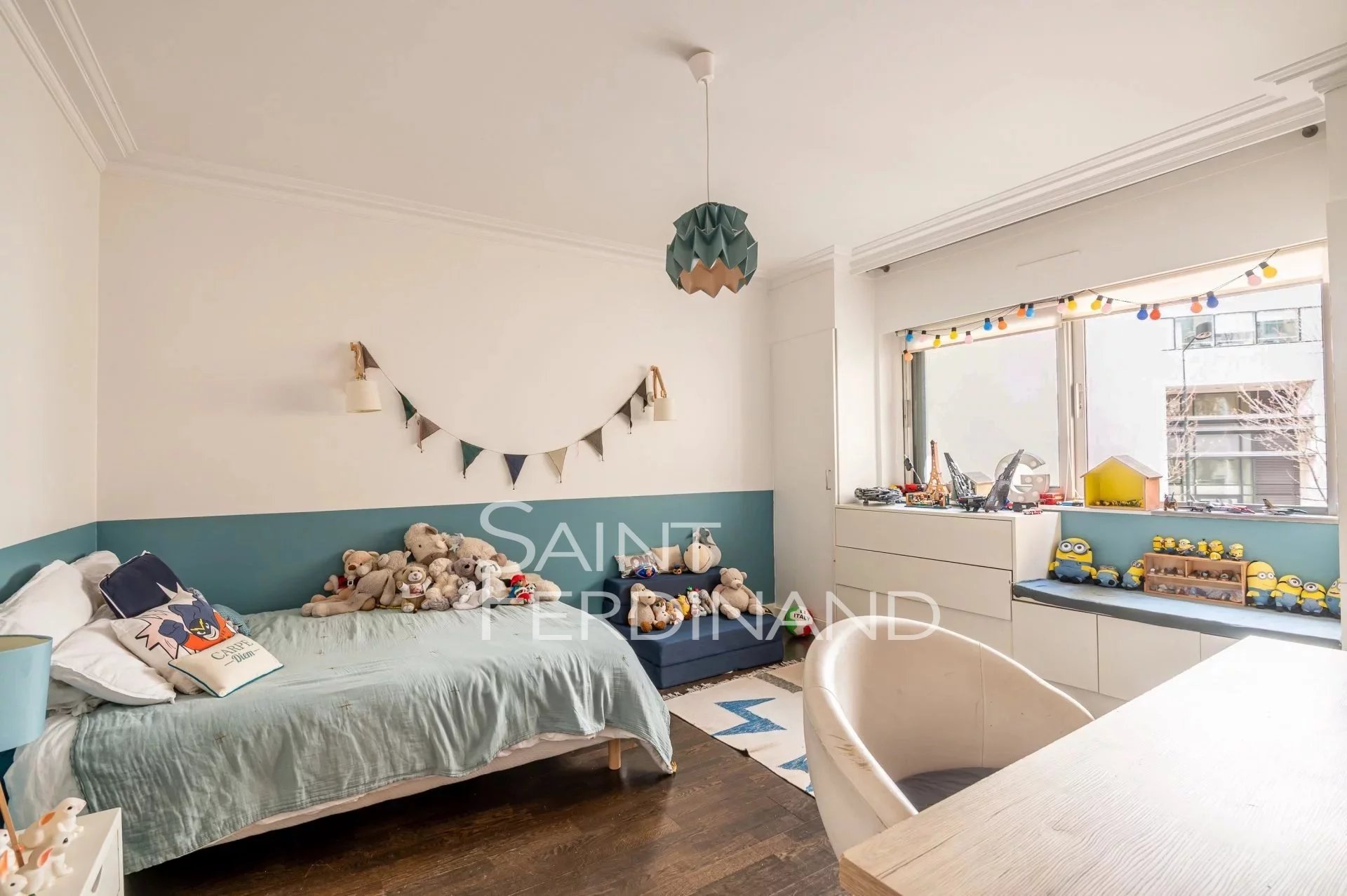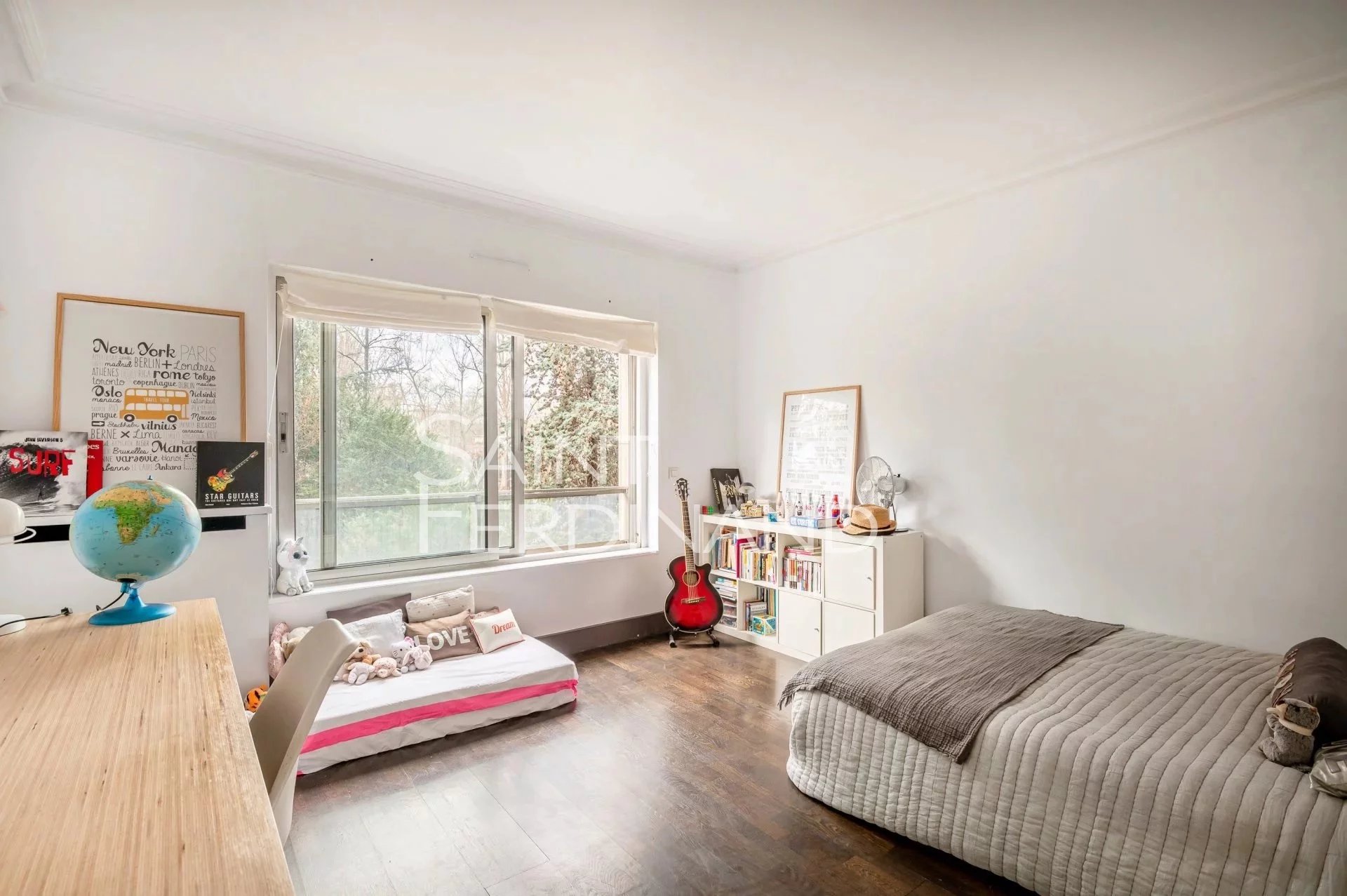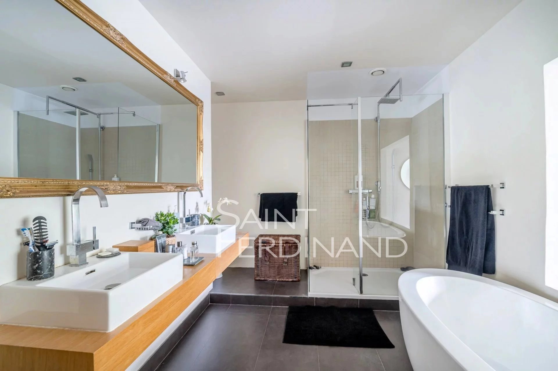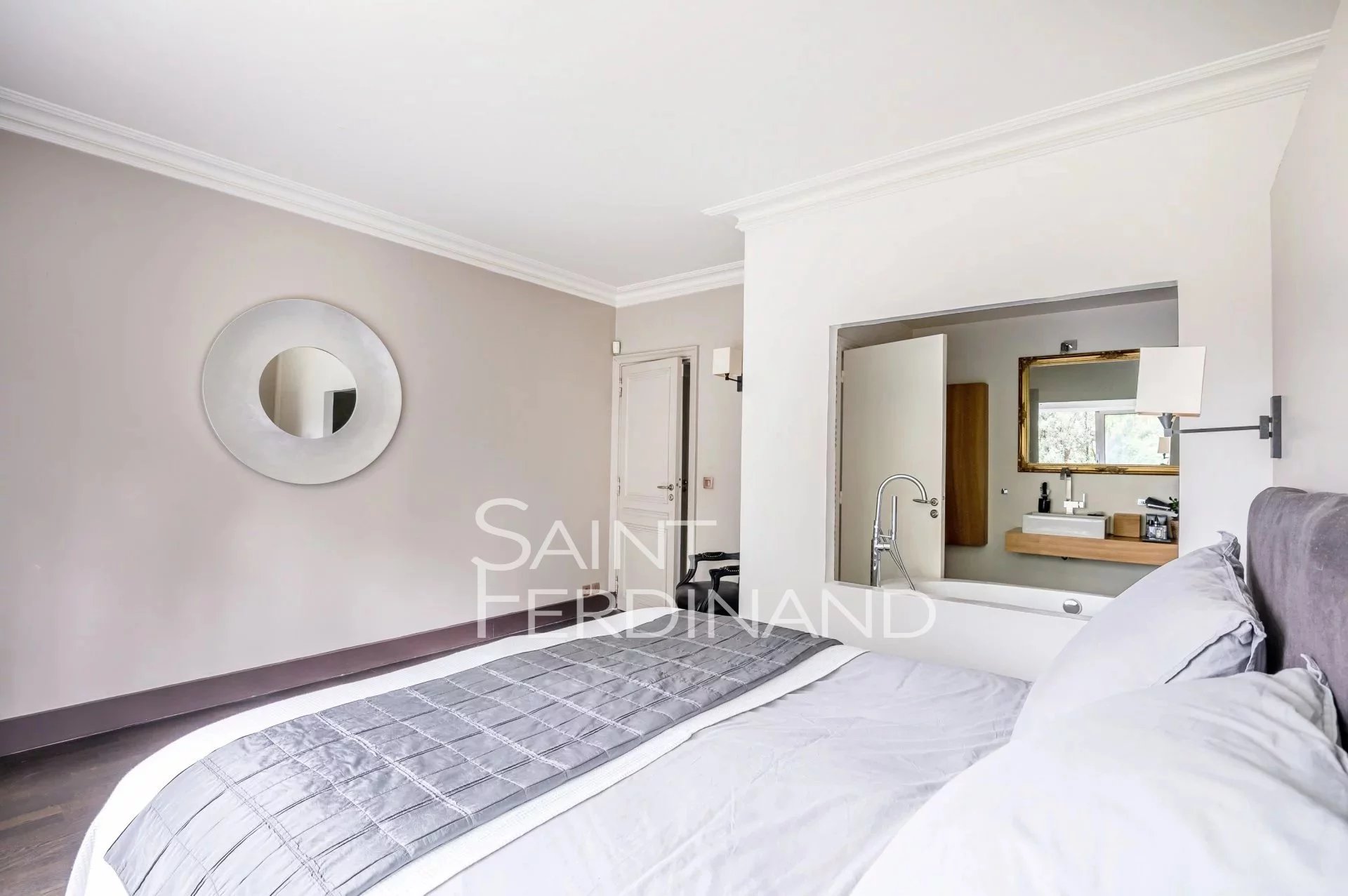 Rez de Jardin 3 chambres Duplex Saint Ferdinand Immobilier vous propose ce superbe duplex traversant de 174m² avec terrasse et jardin de 200m² exposés sud-ouest. Il se compose au rez de chaussée d’un large et très beau double séjour tout en baies vitrées donnant sur le jardin, une cuisine ouverte sur le séjour entièrement équipée avec espace dinatoire, un bureau, une buanderie, un dressing ainsi qu’un WC d’invité.