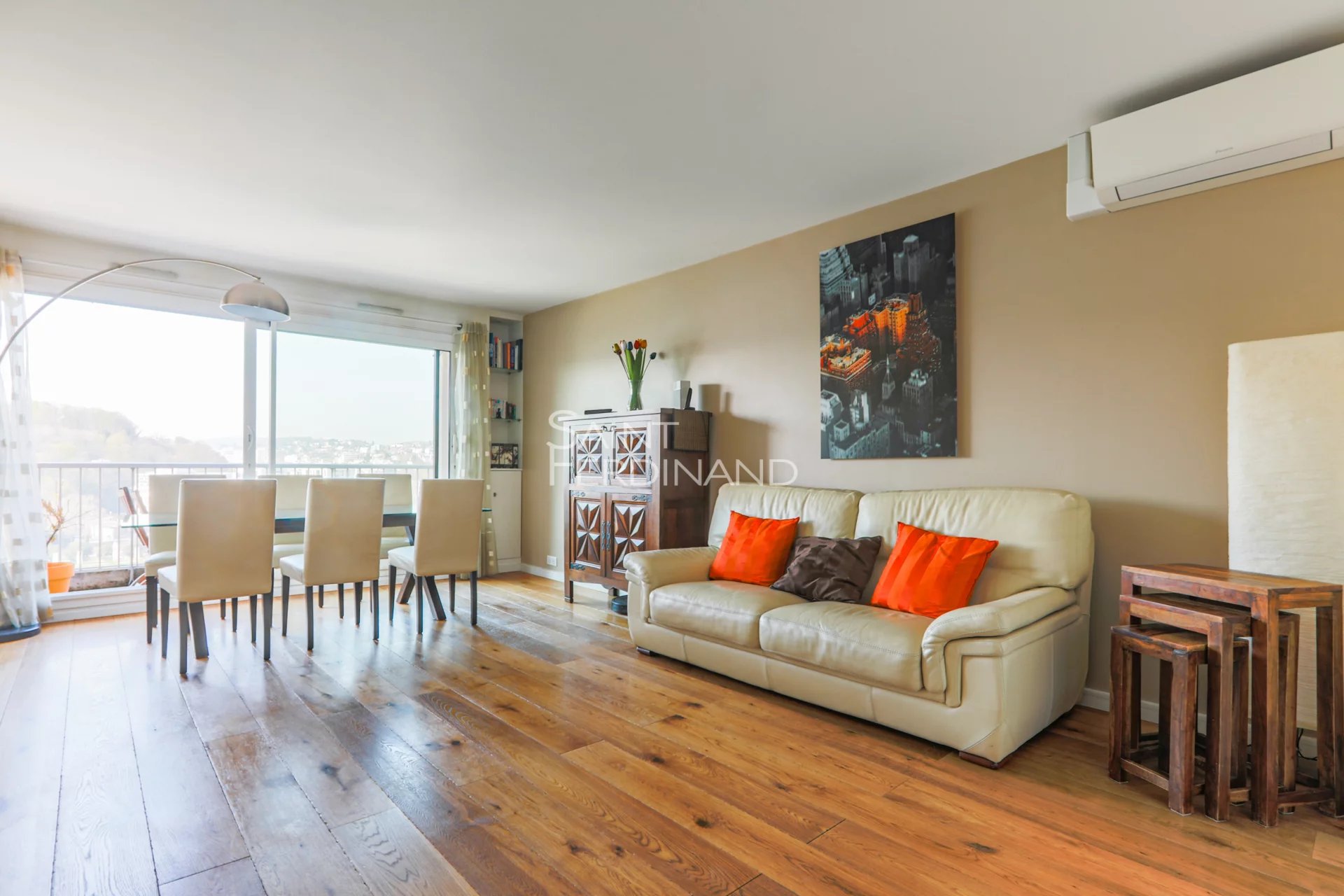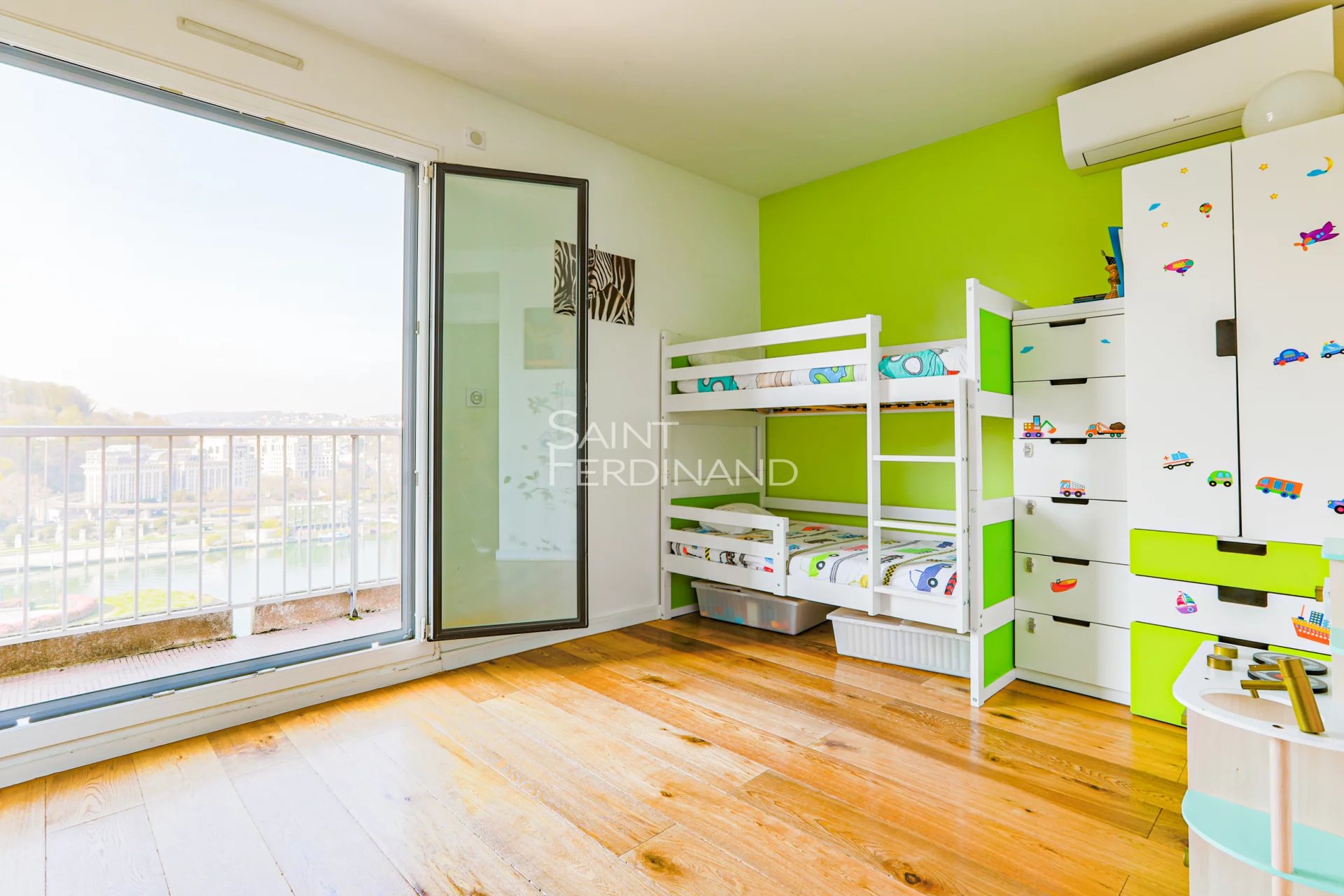 Rives de Seine – appartement familial Saint Ferdinand Immobilier vous propose sur les rives de seine un magnifique appartement familial en étage élevé avec vue panoramique. Entièrement refait à neuf en 2016, il est composé d’une entrée, un séjour lumineux ouvrant sur balcon-terrasse, une cuisine avec buanderie, 4 chambres, 2 salles d’eau avec WC, 1 salle de bains, wc indépendant, nombreux rangements. Une cave et un parking en sous-sol complètent le bien. A deux pas des commerces, écoles, crèche et future ligne 15 au pied de l’immeuble. A voir !