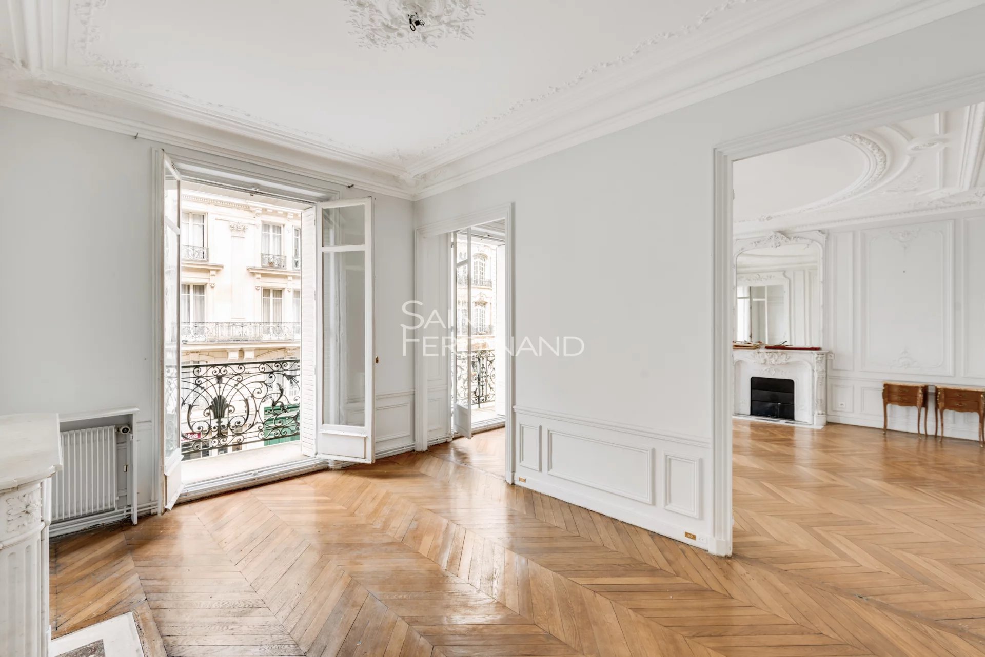 RUE AMPERE RUE AMPERE.Au 2° étage avec ascenseur d’un immeuble Pierre de taille de grand standing, Saint Ferdinand immobilier vous propose un bel appartement familial traversant de 6 pièces.Il se compose de : galerie d’entrée, salon, salle à manger, 4 chambres, cuisine aménagée, salle d’eau-Wc ,salle d’eau, Wc, grand débarras.Trés bon plan modulable.Vous serez séduit par le charme typique des appartements de la plaine Monceau: Parquet, moulures, cheminées, hauteur sous plafond (3,12 m), superbes plafonds décoratifs et balcon filant.Une double cave (20m²) et un studio de service (17m² au sol) au 7ème étage complètent ce bien.