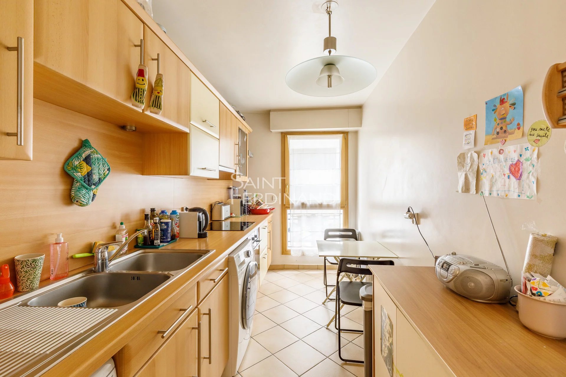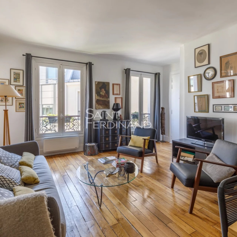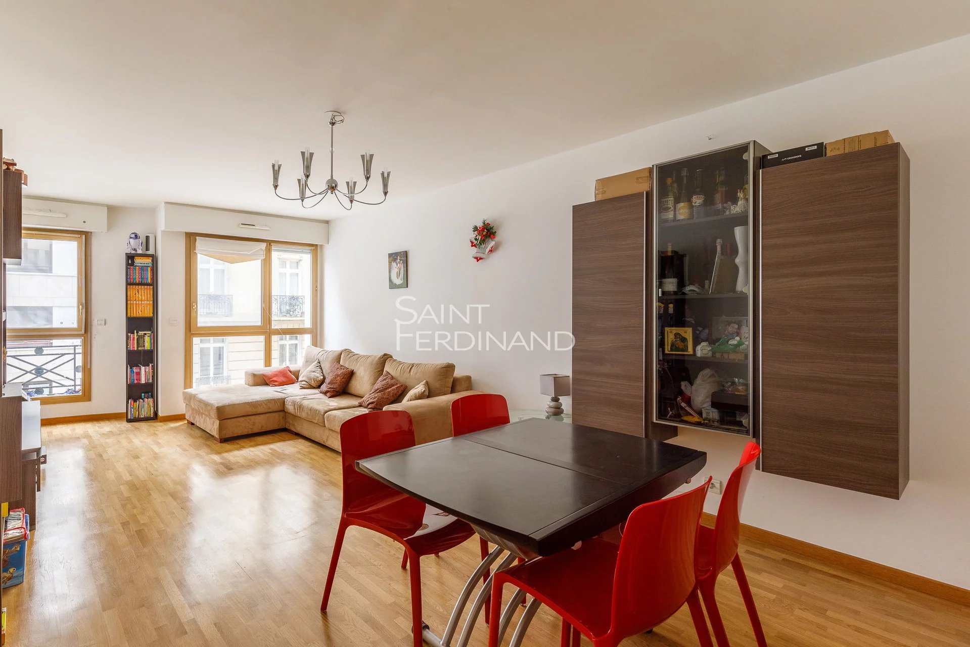 TOCQUEVILLE/ JOUFFROY D’ABBANS Rue de Tocqueville.Au 2° étage d’une résidence moderne de standing avec ascenseur et gardien, bel appartement familial composé de : entrée, séjour, cuisine semi équipée pouvant être ouverte sur le séjour, 2 chambres, salle d’eau, Wc et cave. Parfait état. Proximité de la Rue Lévis, des commerces de la rue Jouffroy d’Abbans et des transports (ligne 14 Pont Cardinet) Place de parking dans l’immeuble en supplément. Accès PMR.Charges mensuelles:176 euros.Aucune procédure dans la copropriété. Honoraires d’agence (3.5 %) à charge acquéreur