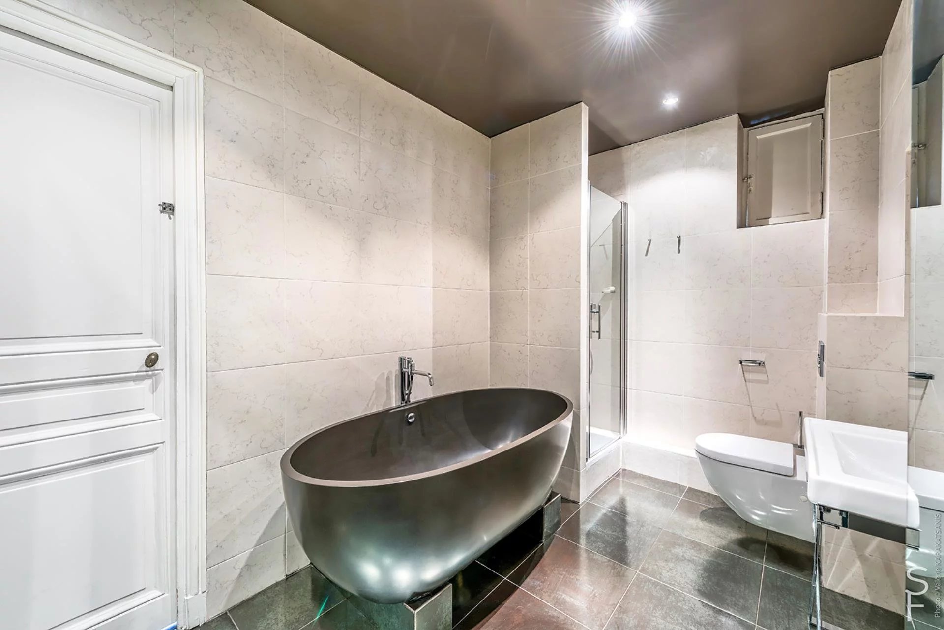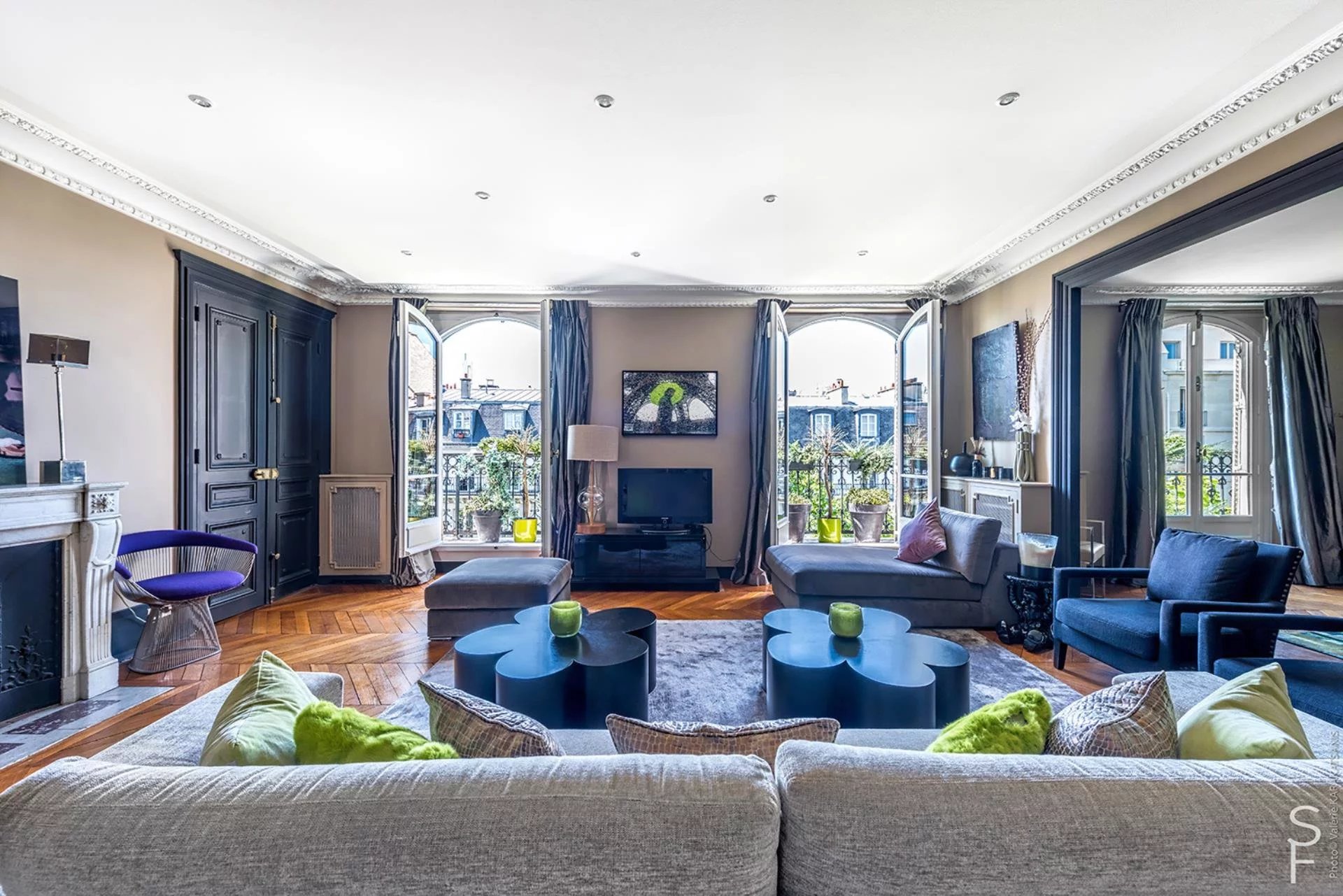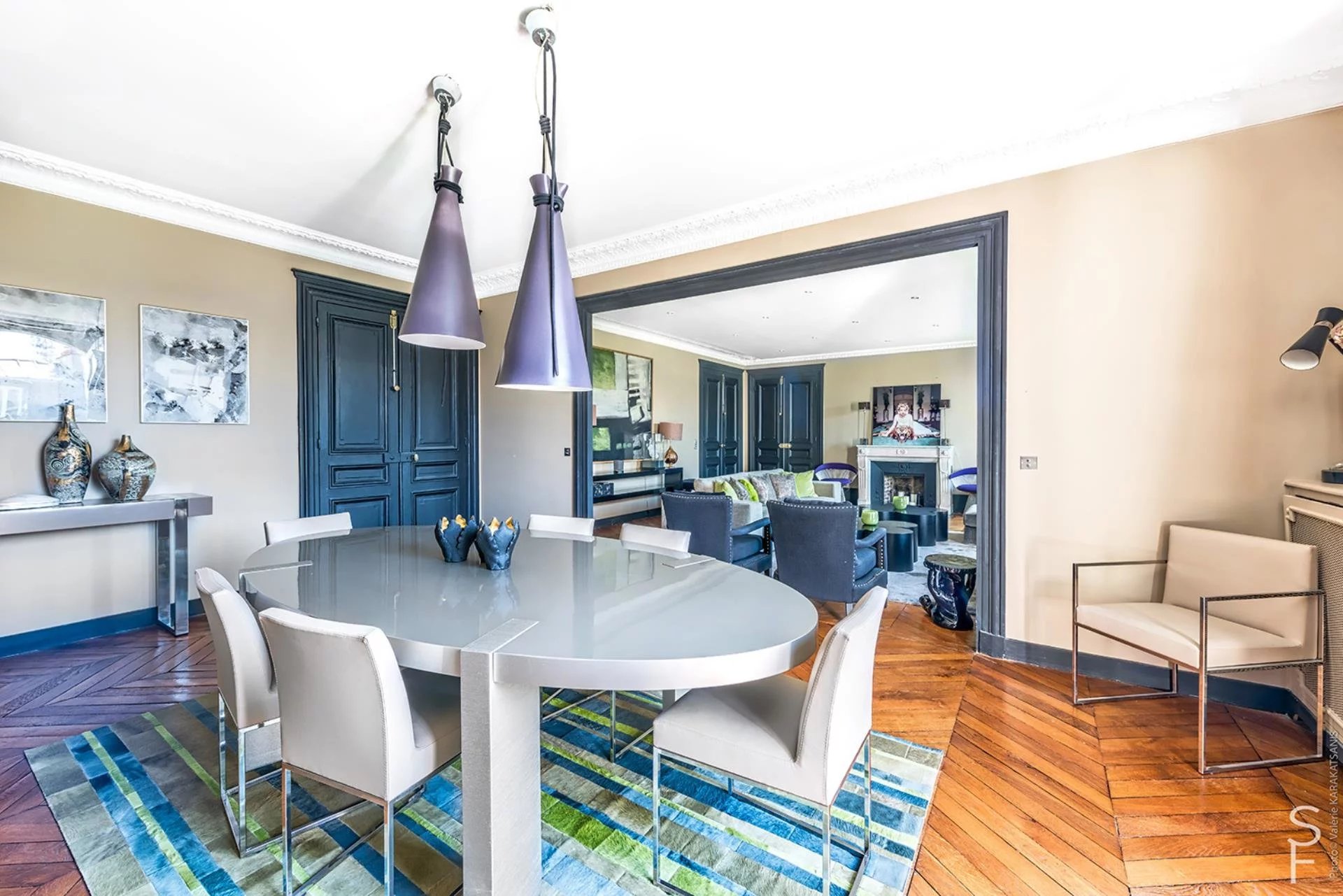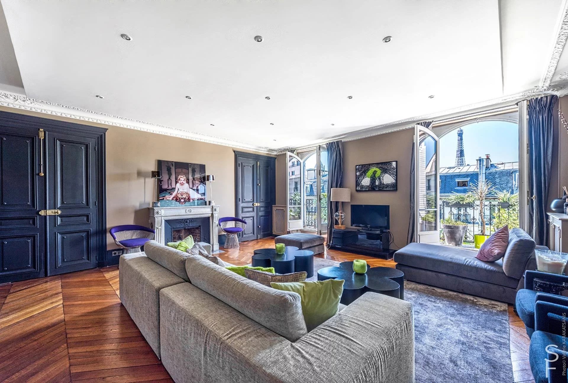 TOUR MAUBOURG. 5 PIECES 136M² Paris 7ème. Invalides. Boulevard de la Tour Maubourg. Bel immeuble Pierre de Taille. Appartement 5 pièces de 136m² au sol au 5ème et dernier étage avec ascenseur. Entrée, double séjour avec cheminée et balcon filant avec vue sur la Tour Eiffel, belle salle à manger, cuisine équipée, une grande chambre avec une vue dégagée sur la tour Eiffel, une chambre sur cour, une salle de bains avec toilette, toilette séparé. Cave. Parquet, Moulures, Cheminée. Calme, très bon état, pas de perte de place. Décoration raffinée. Belles prestations.