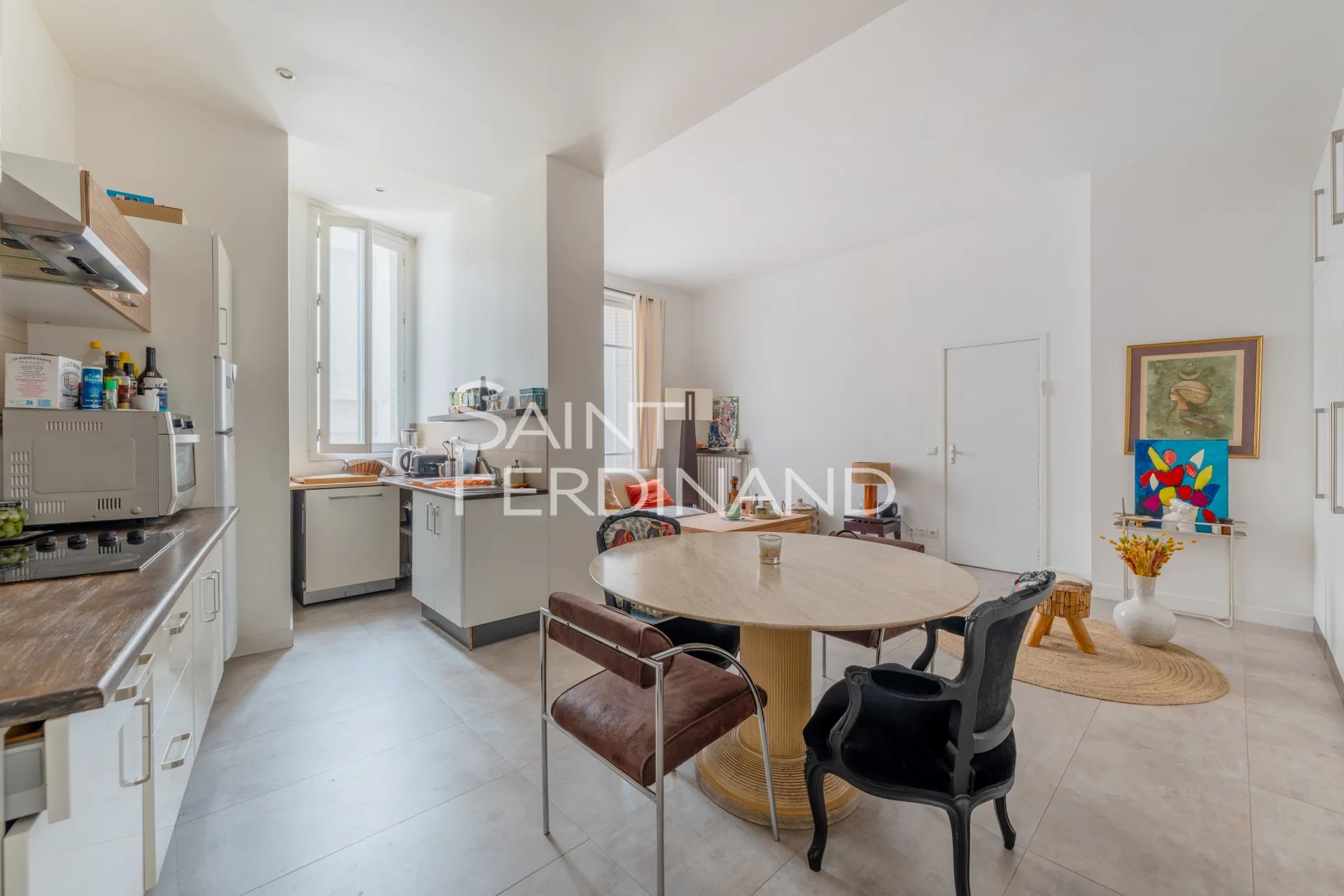 Cet élégant appartement de 2 pièces avec 3,10m de hauteur sous plafond se situe au 3e étage avec ascenseur d’un bel immeuble pierre de de taille et se compose d’une entrée, un spacieux séjour exposé sud-ouest avec cuisine ouverte aménagée et équipée, Une large chambre avec sa salle de bains (possibilité 2ème chambre), une salle de douche avec wc, une buanderie, nombreux rangements intégrés. Deux caves complètent ce bien.
